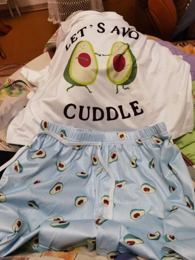 спасибо большое, всё понравилось. продавец положил резиночку для волос, очень приятно.пижамка с авакадо хоть чистая синтетика, но к телу очень приятна.