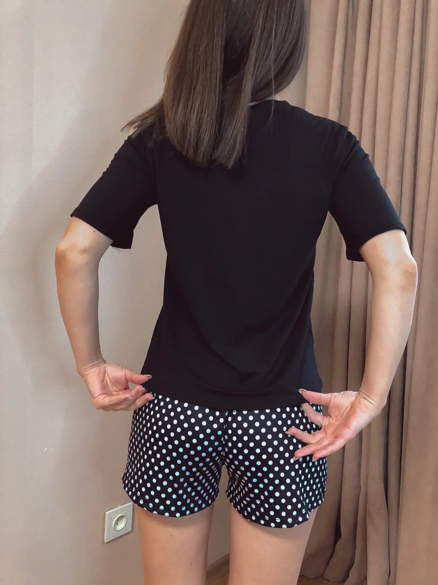 пижама не очень понравилась б топ короткий. шорты слишком бабушкины.