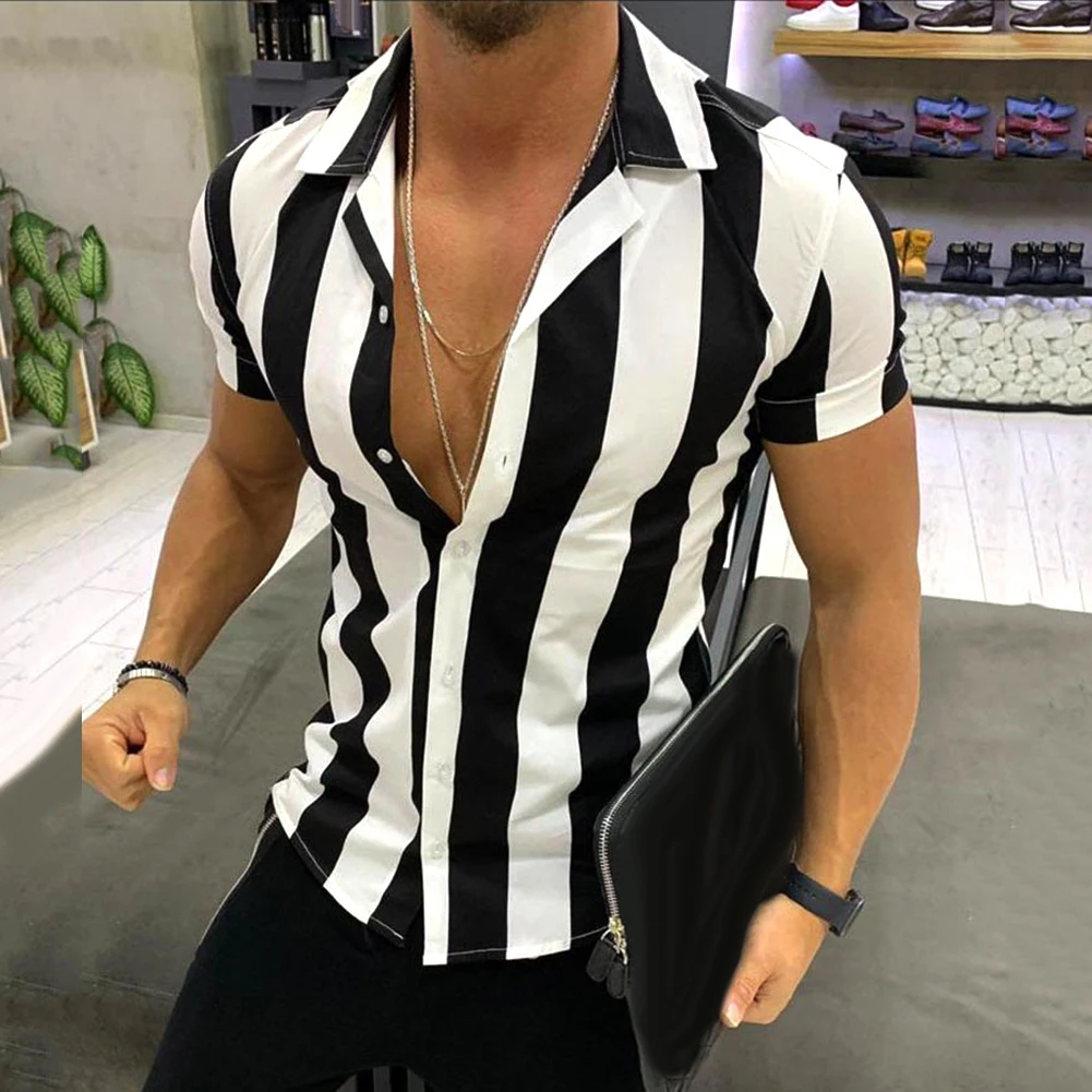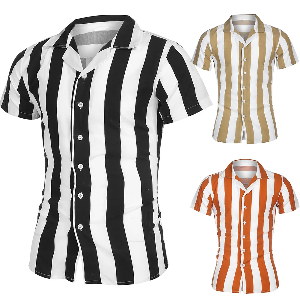 Повседневная мужская рубашка с отложным воротником, короткими рукавами, вертикальными полосками, на пуговицах, подходит для работы, свидания, путешествий, повседневная одежда