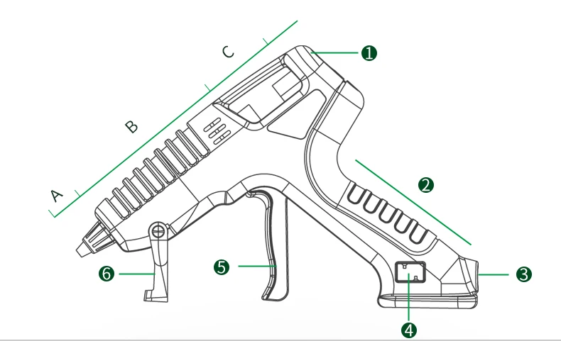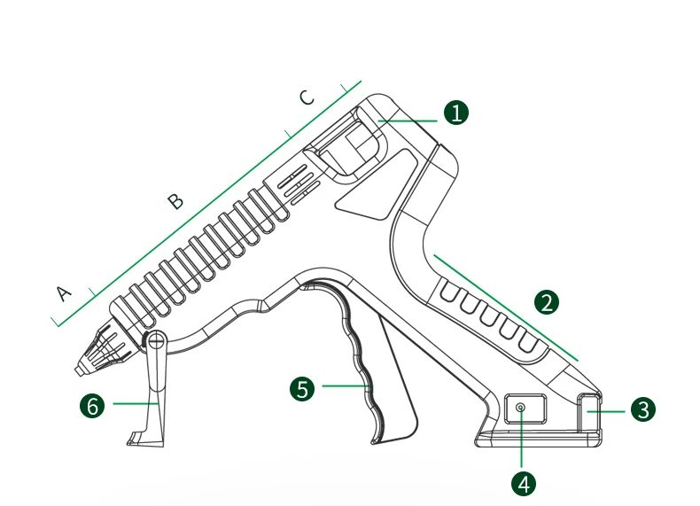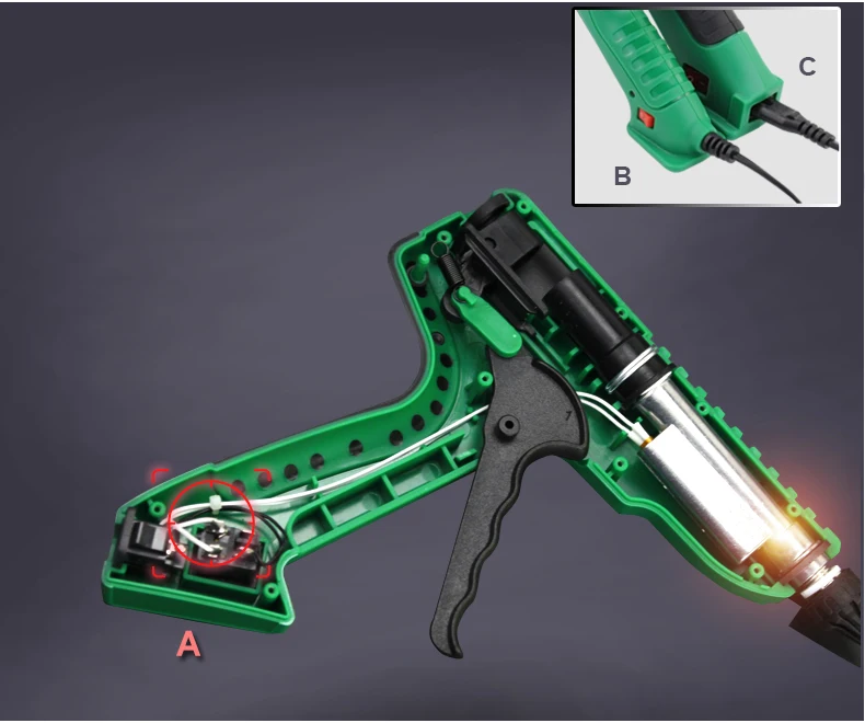 B: 40 Вт клеевой пистолет, интегрированный шнур питания