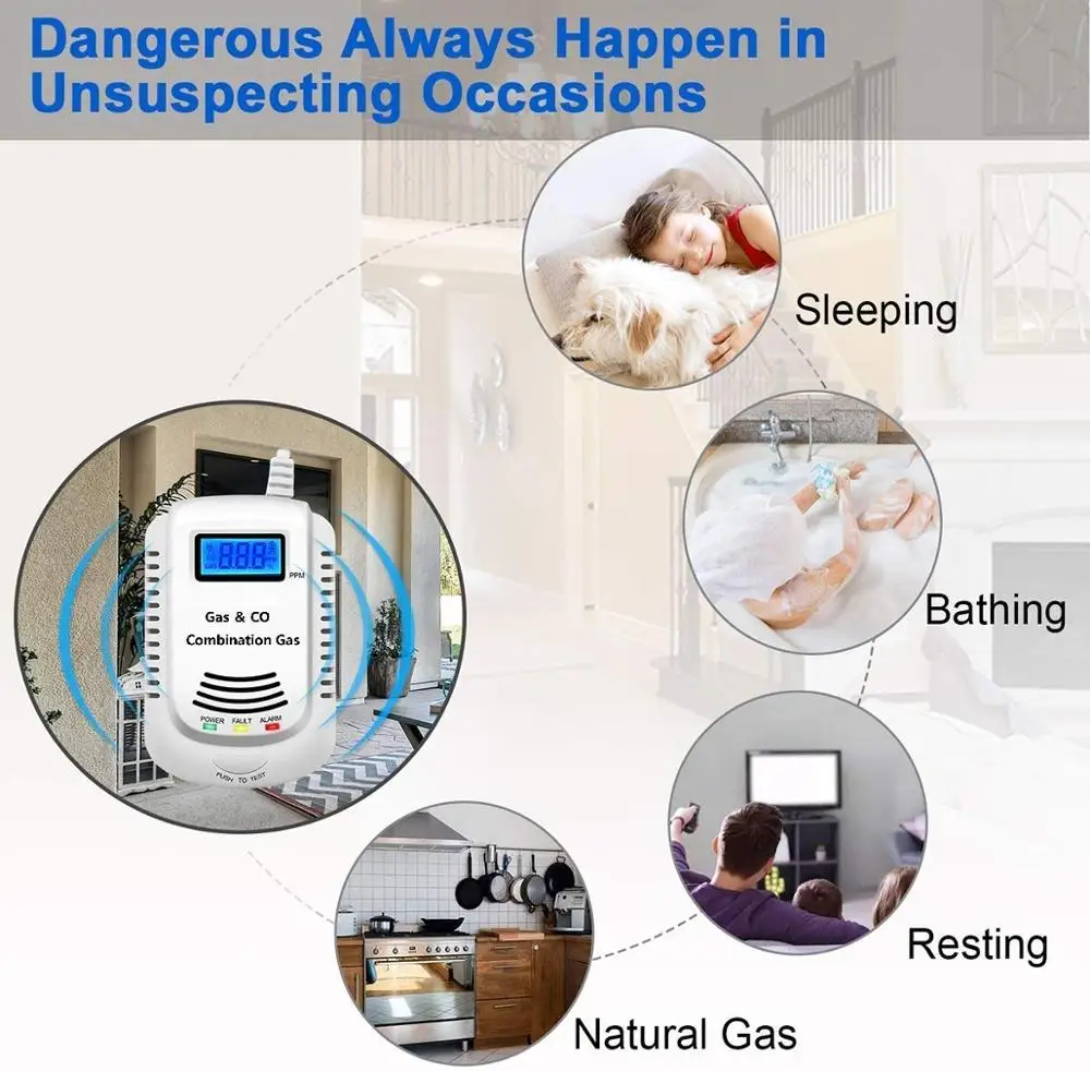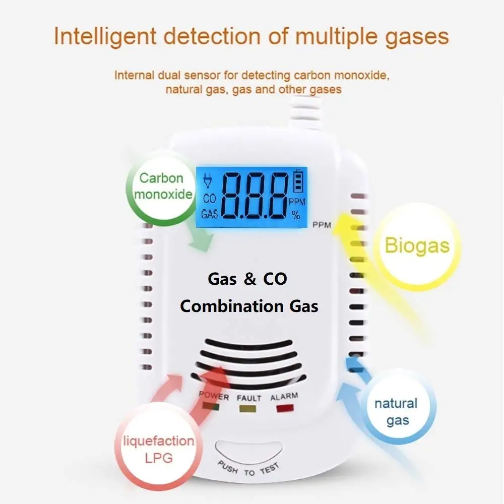 Датчик утечки газа, 2 в 1, Детектор Co и газа
