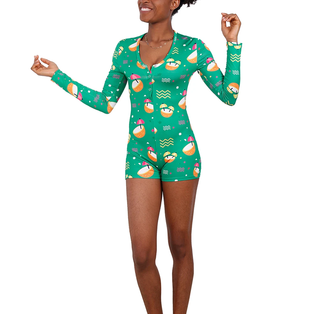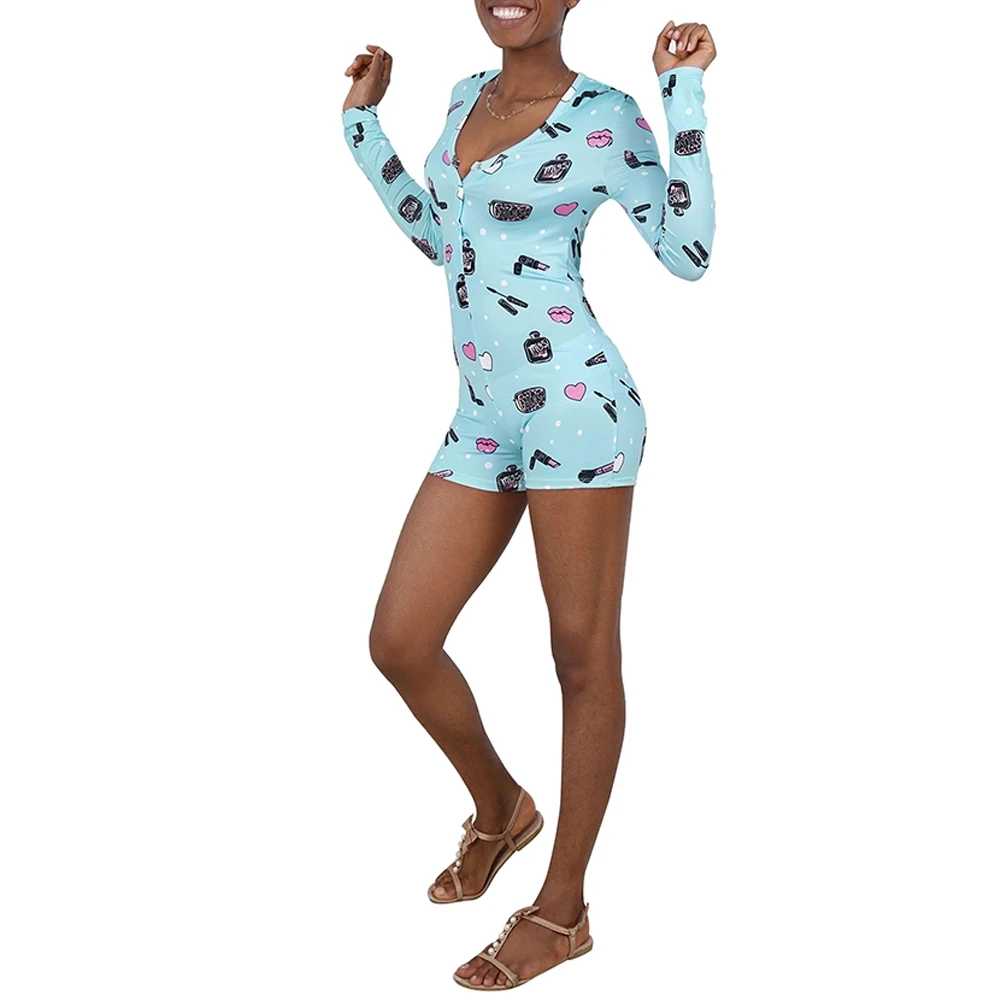 Комбинезон женский, с длинным рукавом, на пуговицах, с глубоким V-образным вырезом