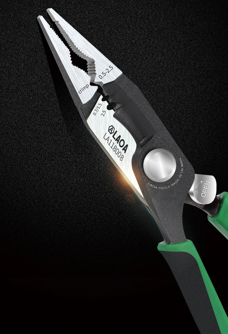 Инструменты для обжима LAOA, 8 дюймов, игольчатые кусачки плоскогубцы многофункциональный инструмент, инструмент для зачистки проводов Aalicate, плоскогубцы с длинным носом и функцией блокировки