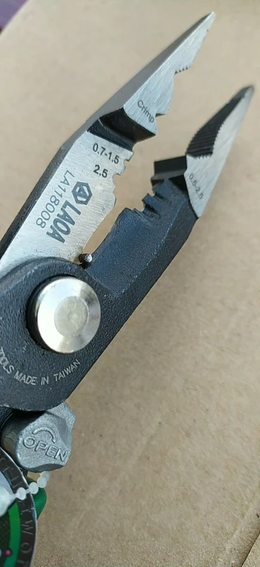 Это кайф. Качество изготовления - улёт, смотрите фото: губки сходятся вообще без зазора! угол заточки ножниц очень острый, под мягкие материалы: медь, алюминий, пластик. Режет провода как масло. Для стали не предназначены, но мы же из России, любопытно же было попробовать)) "вжж сказала хитрая японская бензопила"))) 2мм вязальной проволоки перекусило легко и без напряжения. Ножницы, конечно, незначительно подмяло, что естественно для такой заточки (смотрите фото). Результатом я доволен, для работы с проводом - отлично подходит. Для проволоки и перекусывания гвоздей есть другой инструмент.