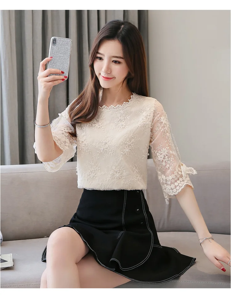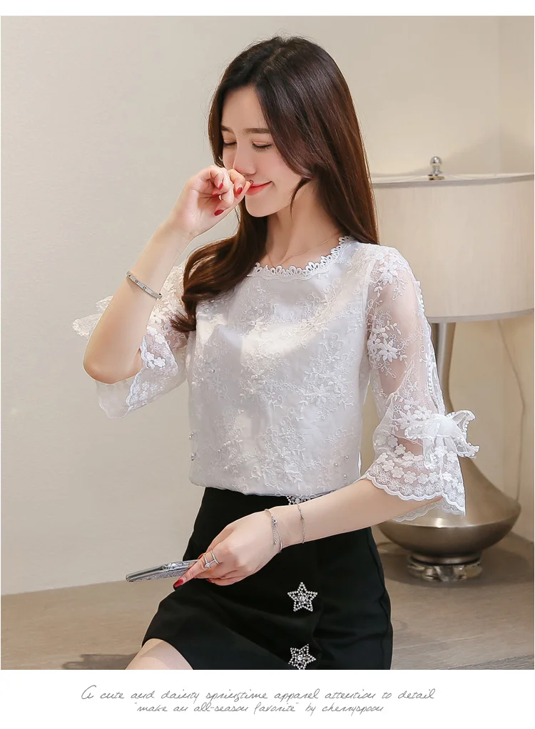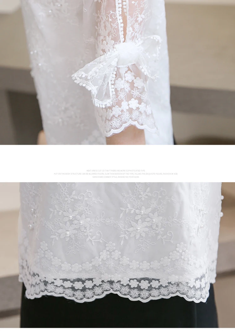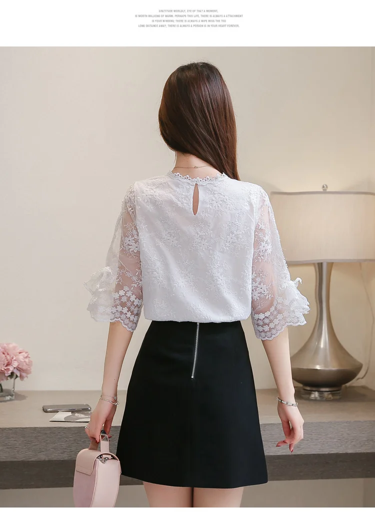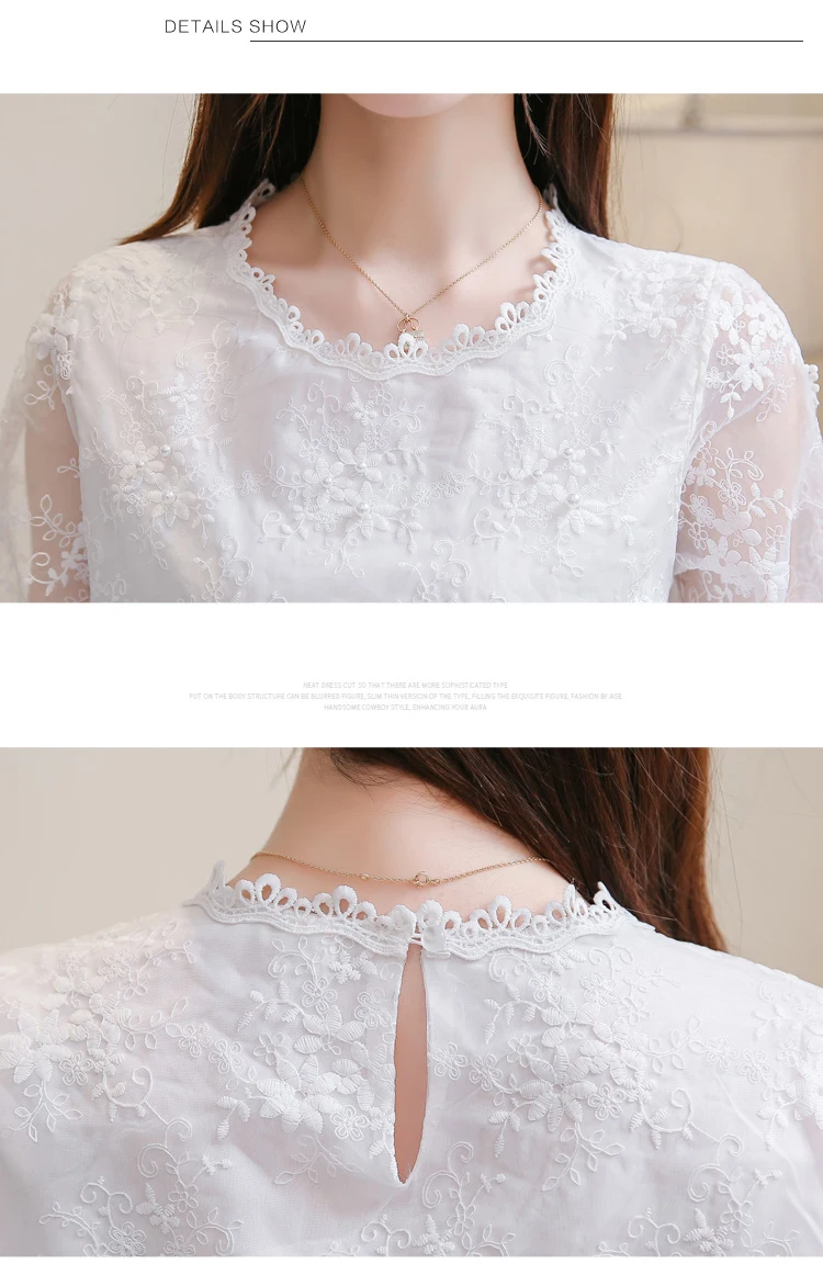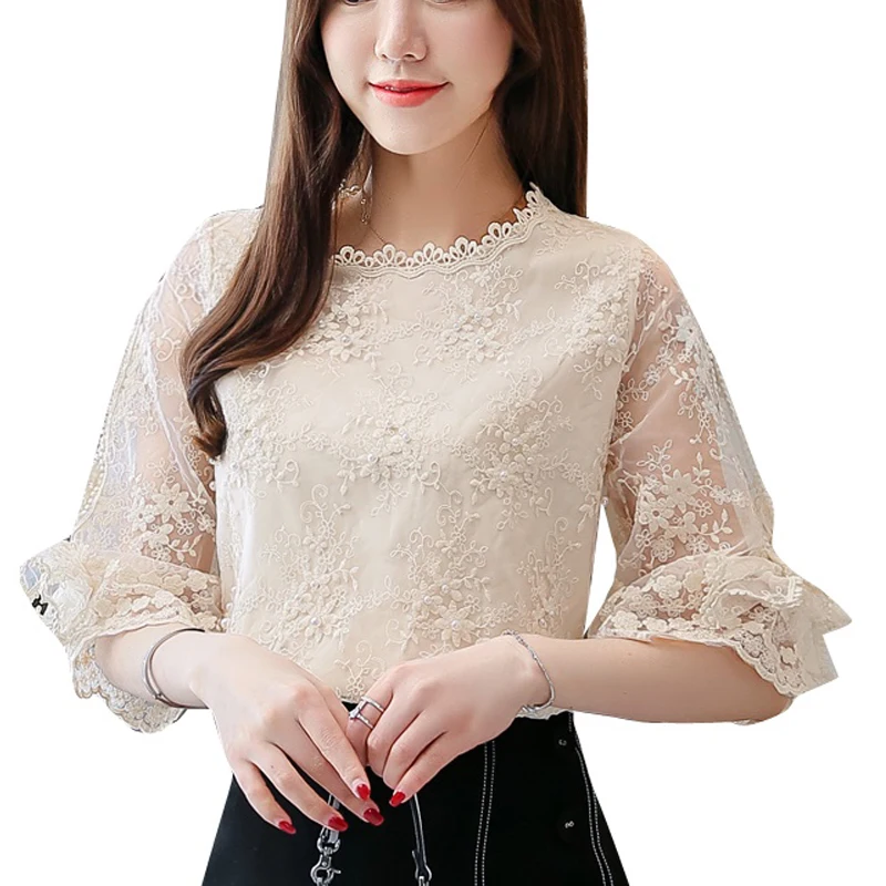 Женская блузка с круглым вырезом, летняя Новинка 2021, кружевная свободная модная шифоновая блузка с полурукавами и вышивкой, с бисером, 191F