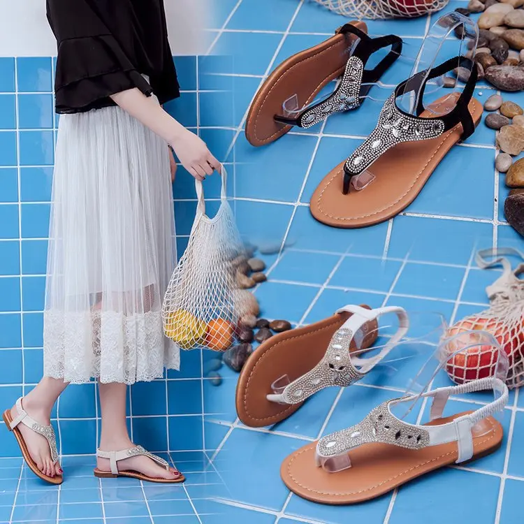 Сандалии 2020 женские эластичные шлепанцы с блестками Летняя женская обувь Стразы