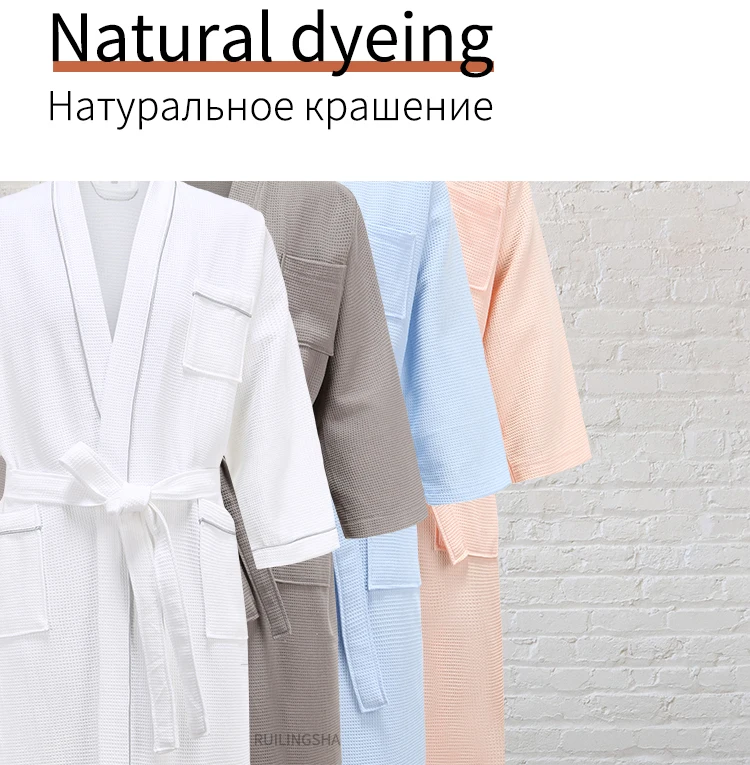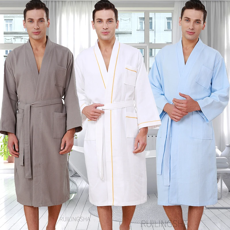 Мужские 100% хлопок кимоно полотенце халат летнее платье размера плюс Вафельный Халат мужские Халаты отель пижамы для женщин халат