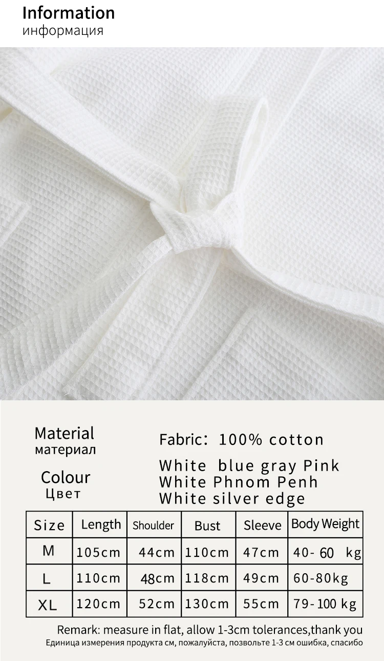 Bought color white with gold pipe looks noble, textile is 100% cotton towel clean and tidy, this on sale bathrobe was packed very nice, i am a college girl find it to use when go to the toilet in night , height near 160CM, value of the weight 55KG, likes the size M is good for my body, very nice kimono, well absort the water, clean and neat, good quality, transportation time took 15 days very happy, so fast shipping, good seller, will come back again...