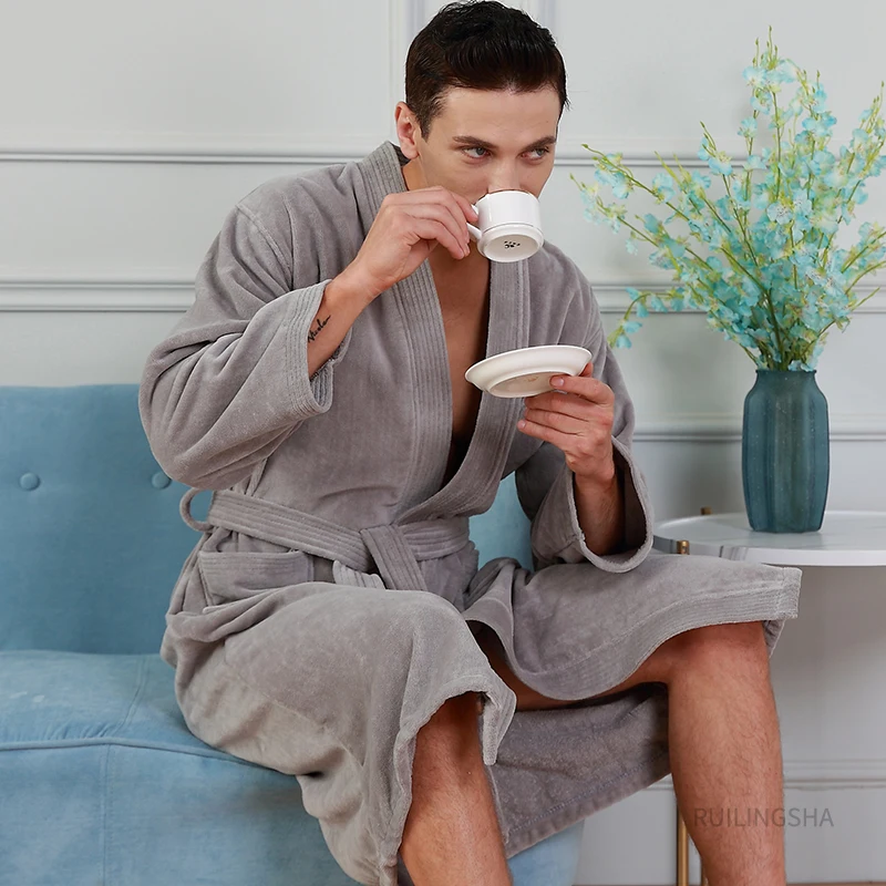 Хлопковый длинный махровый халат с 5 звездами, мужской зимний халат...