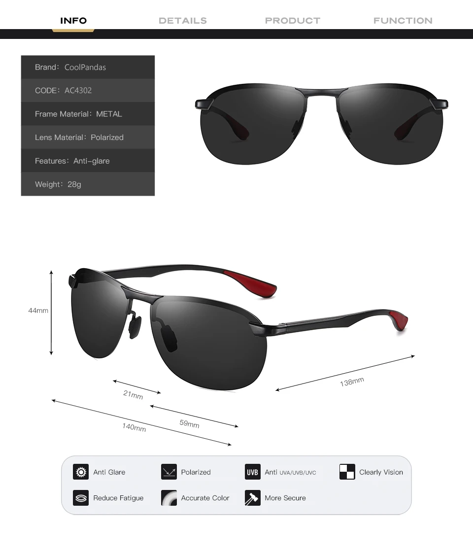 Солнцезащитные очки CoolPandas мужские в алюминиевой оправе, поляризационные, с дужками, UV400, для вождения