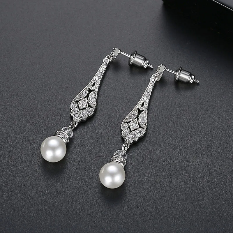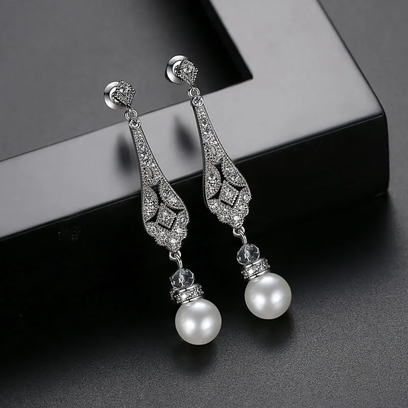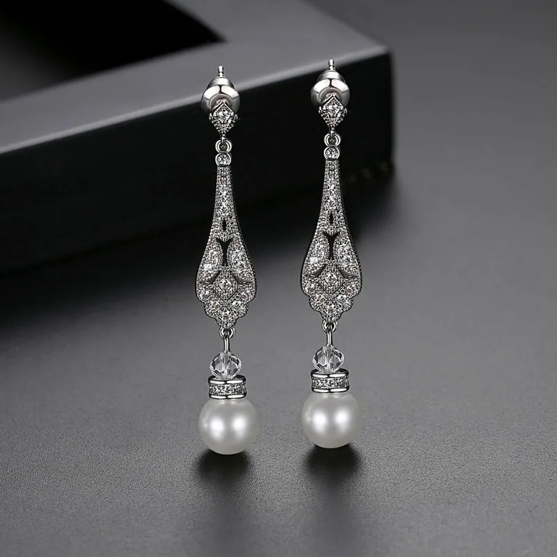 Великолепные Потрясающие винтажные свадебные серьги с фианитами цвета слоновой кости и жемчугом класса ААА, серьги с кубическим цирконием, свадебные серьги с жемчугомМатериал: медный сплав, кубический циркон, жемчугРазмеры: 4,7 см Длина 0,7 см ШиринаСлучаи: свадьба, помолвка, юбилей, вечерние, повседневные