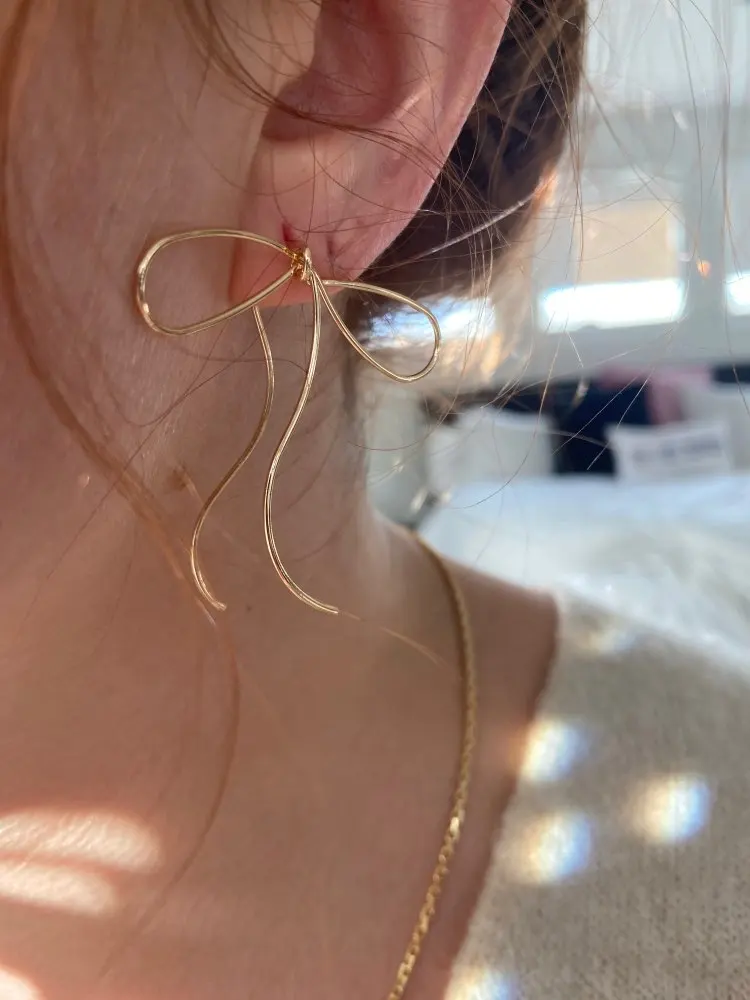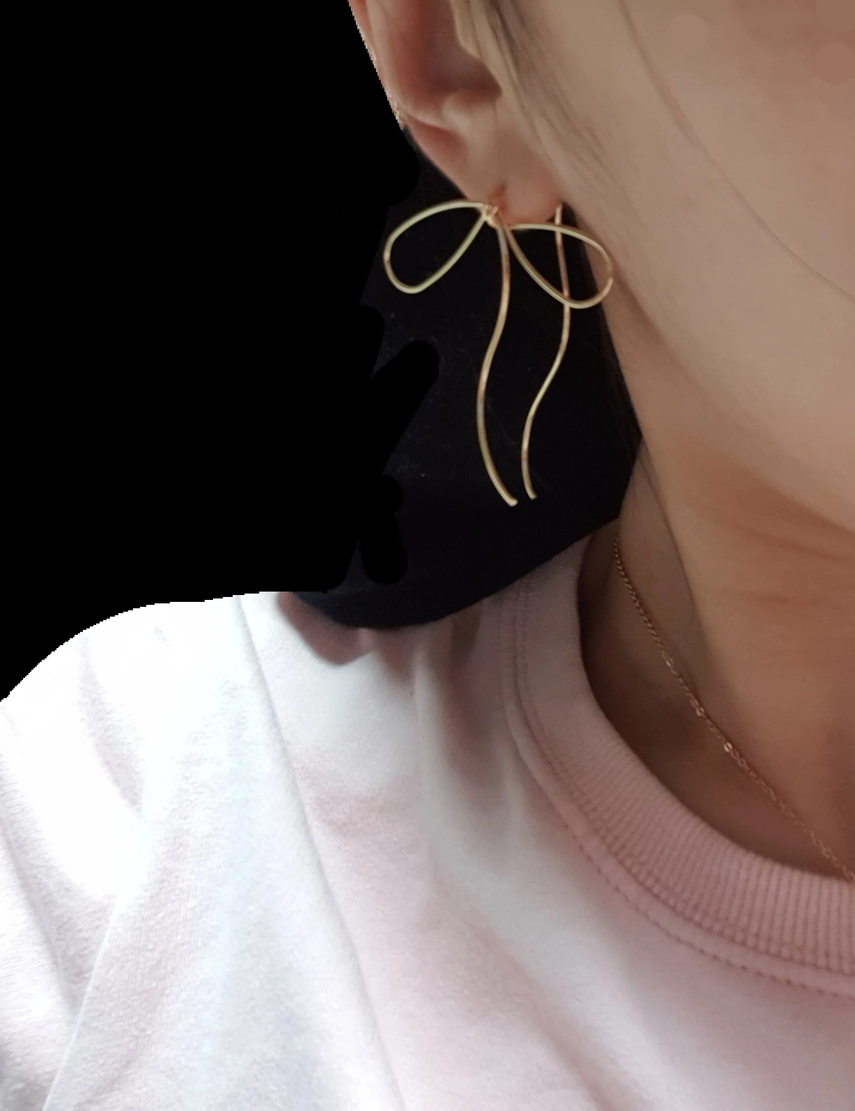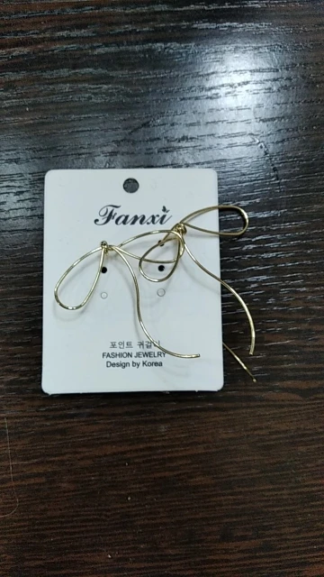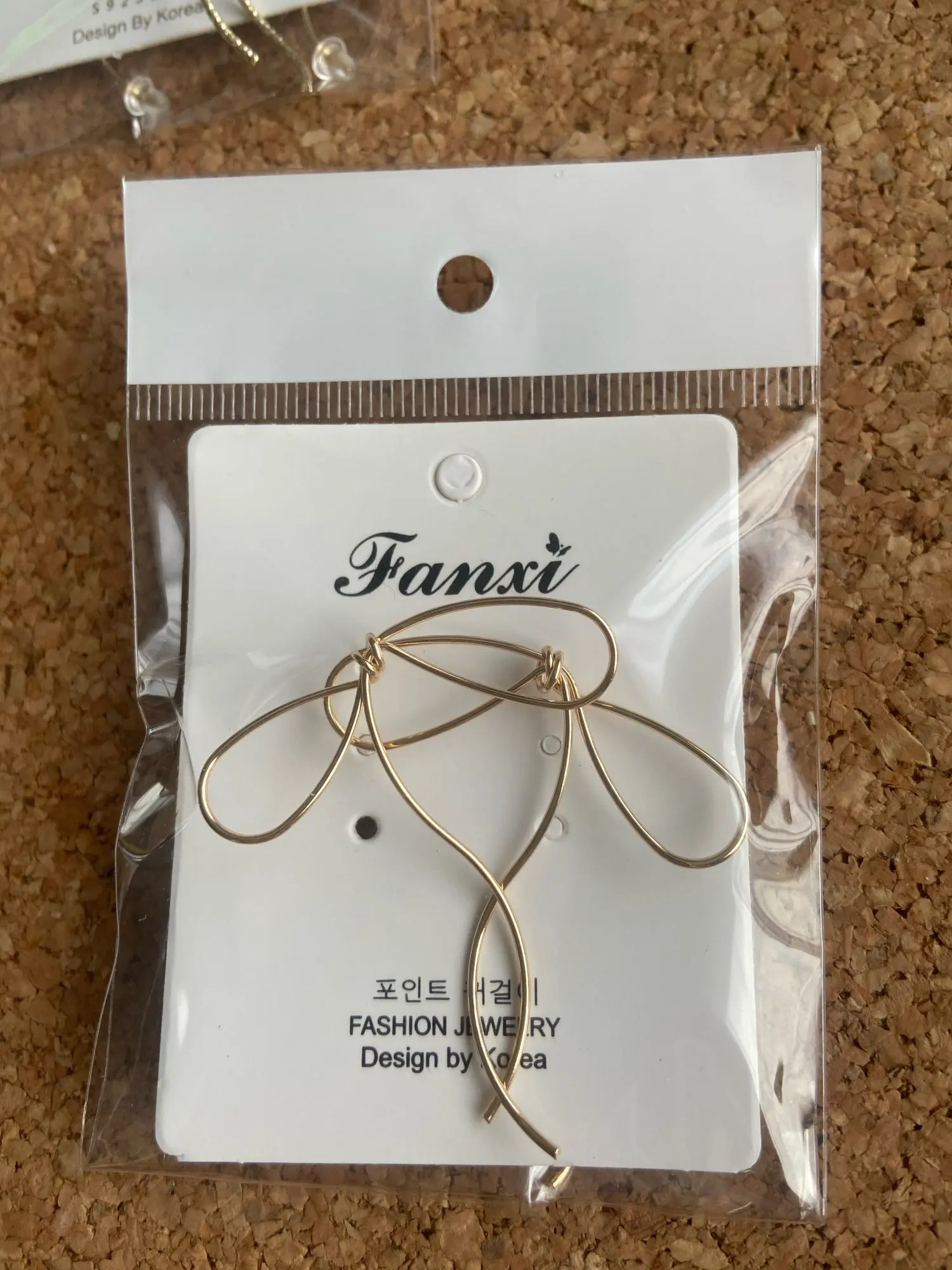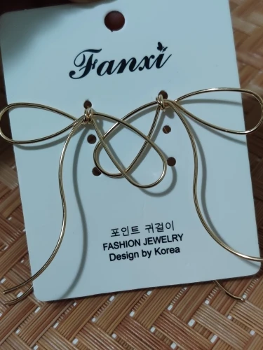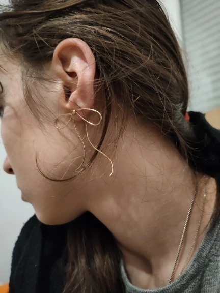 очень необычные ,красивые серьги.весьма объемные .важный момент: сережка выполнена из цельного куска проволоки ,гвоздик серьги - один из краев бантика достаточно длинный и большой по сечению .Тем у кого мочка проколота тонкой иглой это украшение вряд ли удастся одеть.