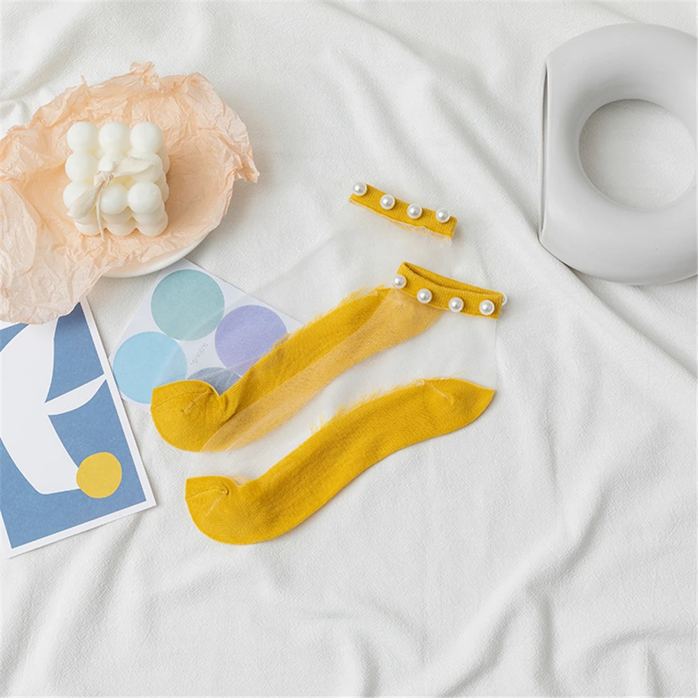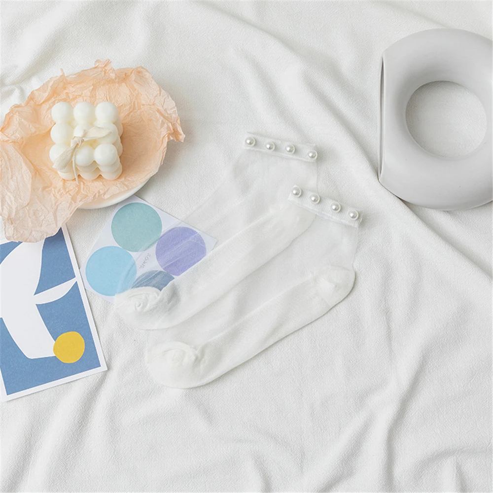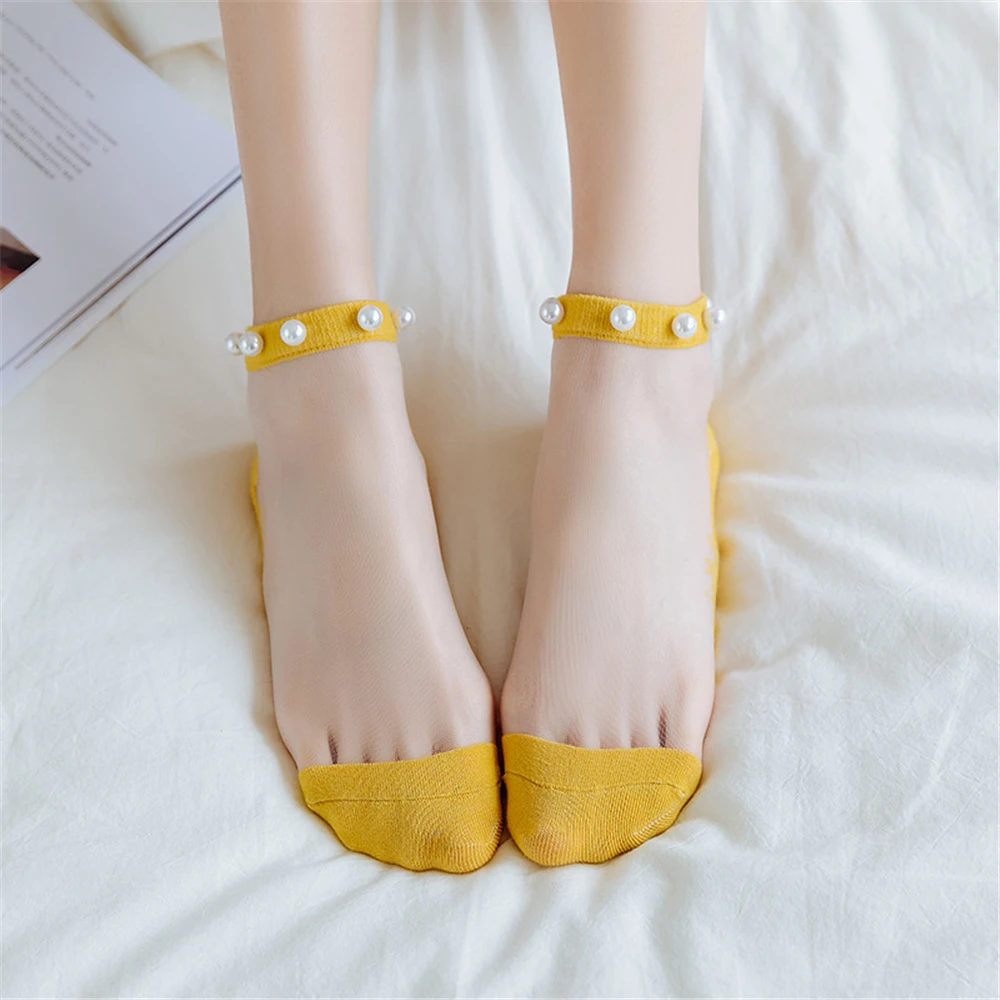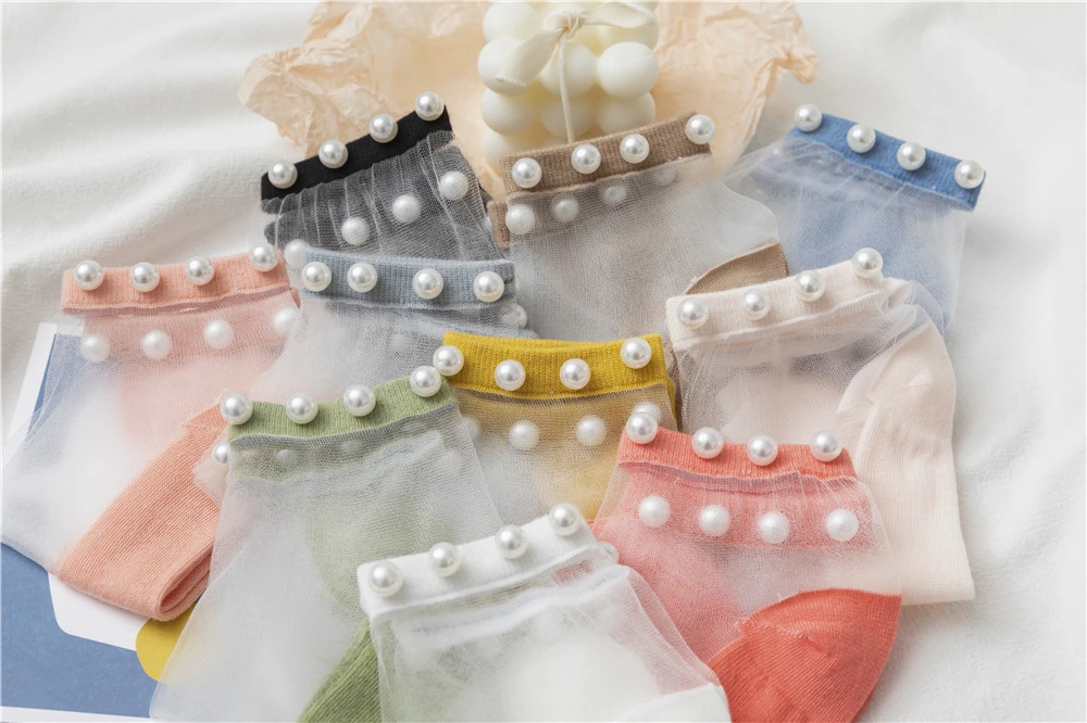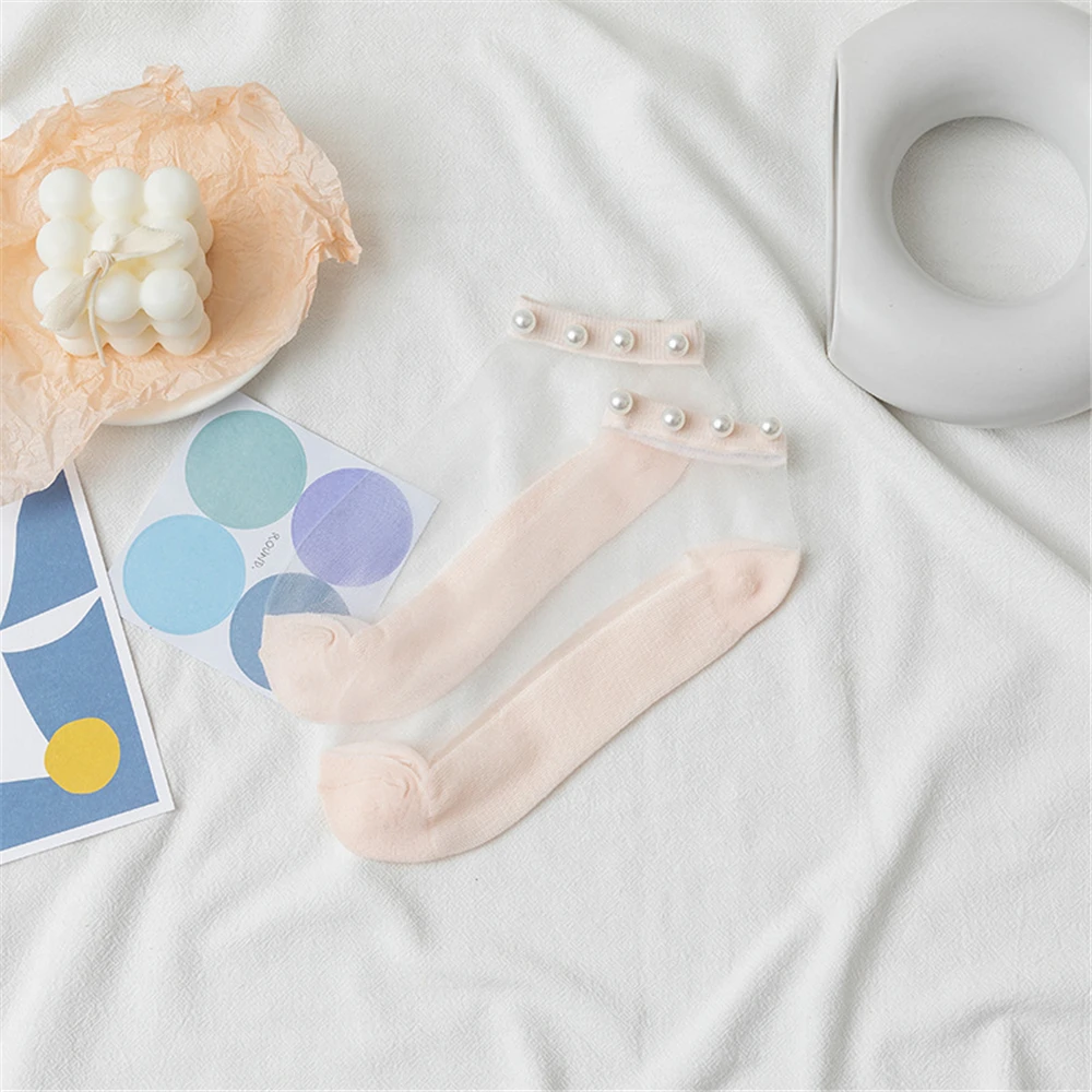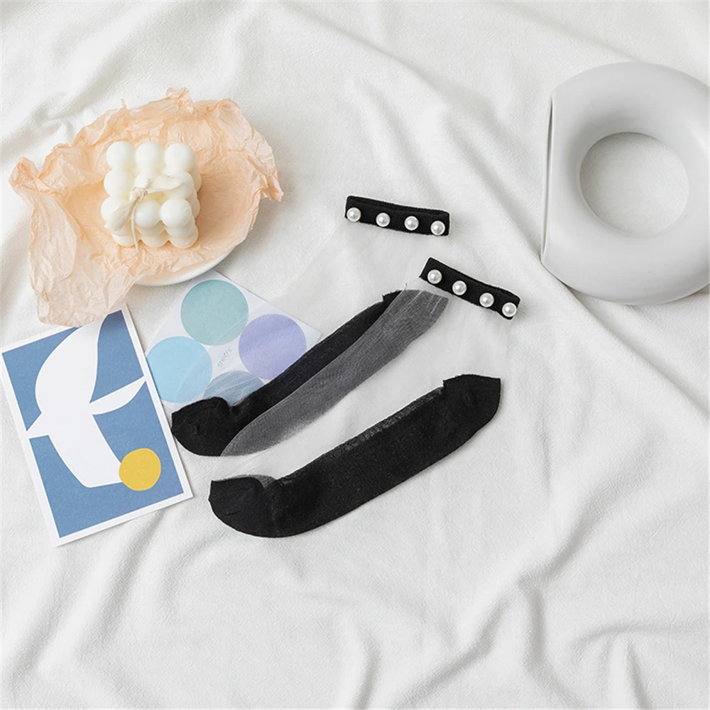 Носки женские весенне-летние из дышащего тонкого кружева с жемчугом