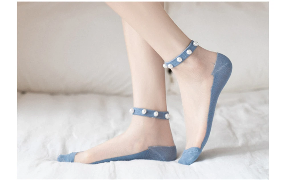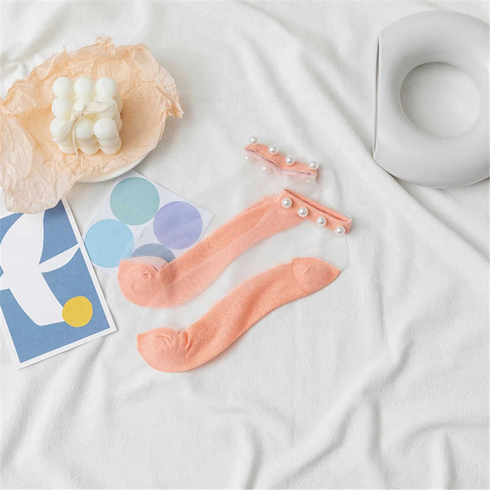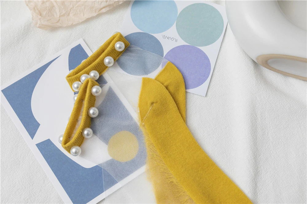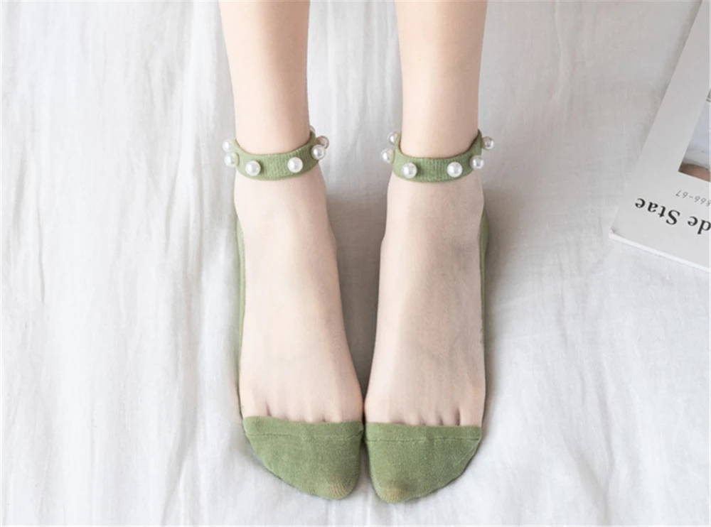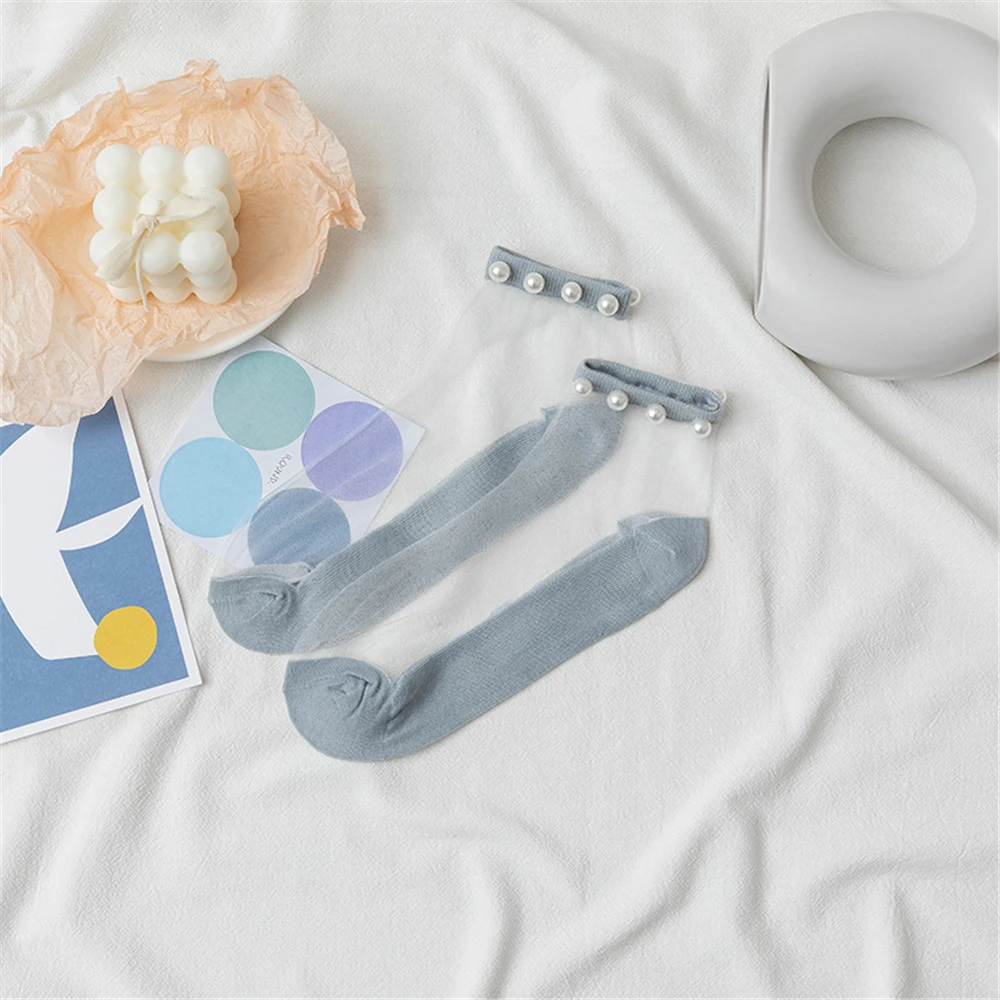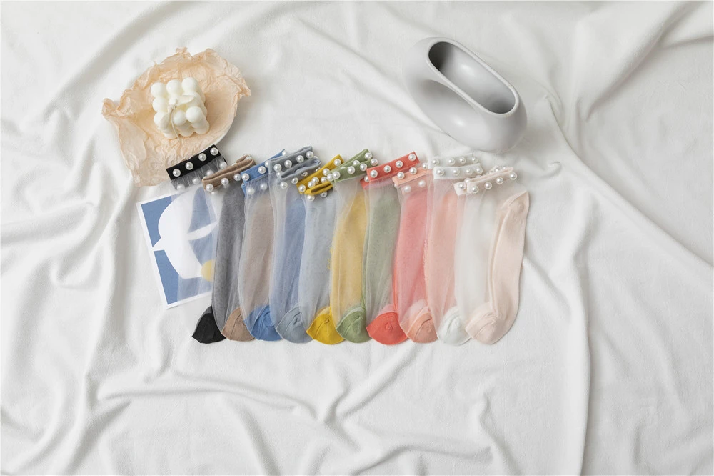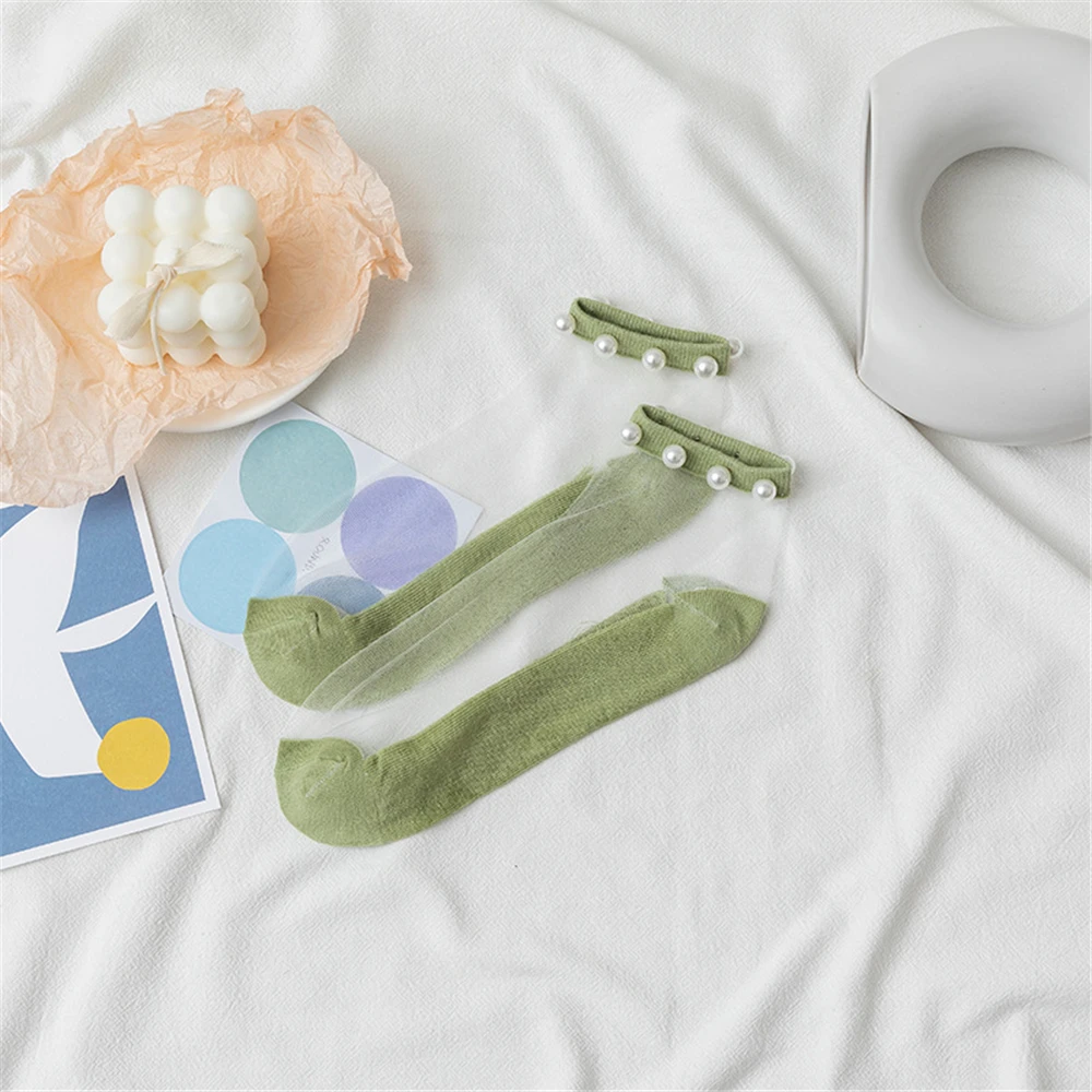 Носки женские весенне-летние из дышащего тонкого кружева с жемчугом