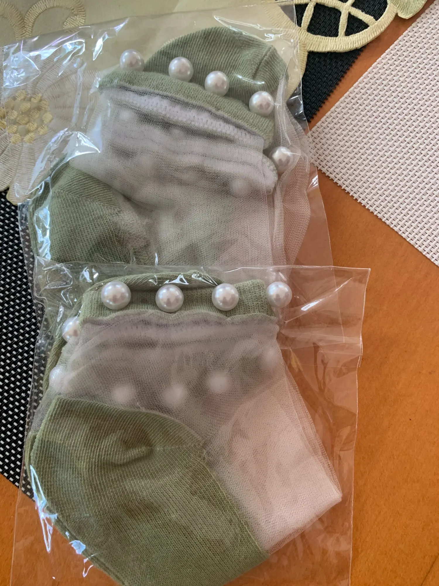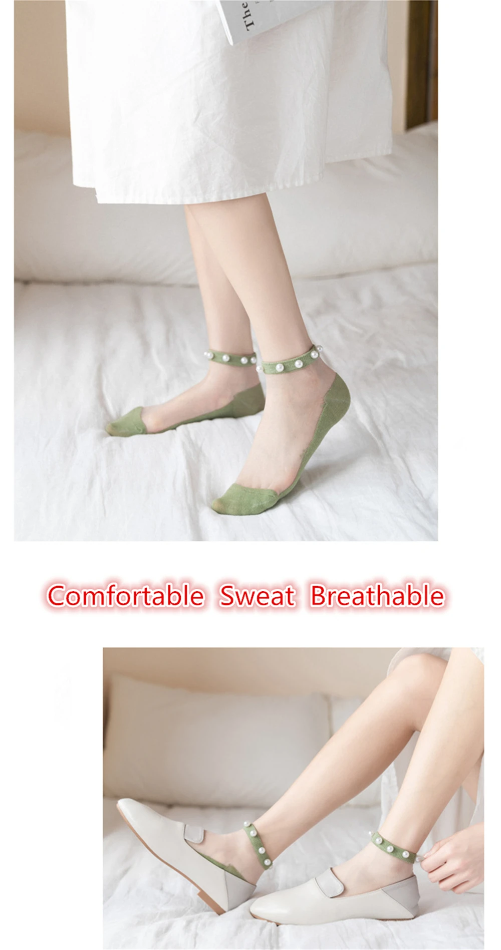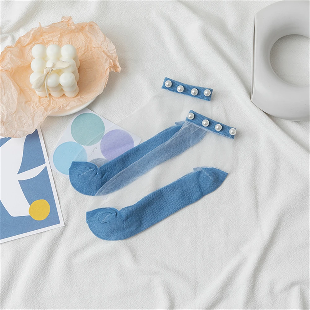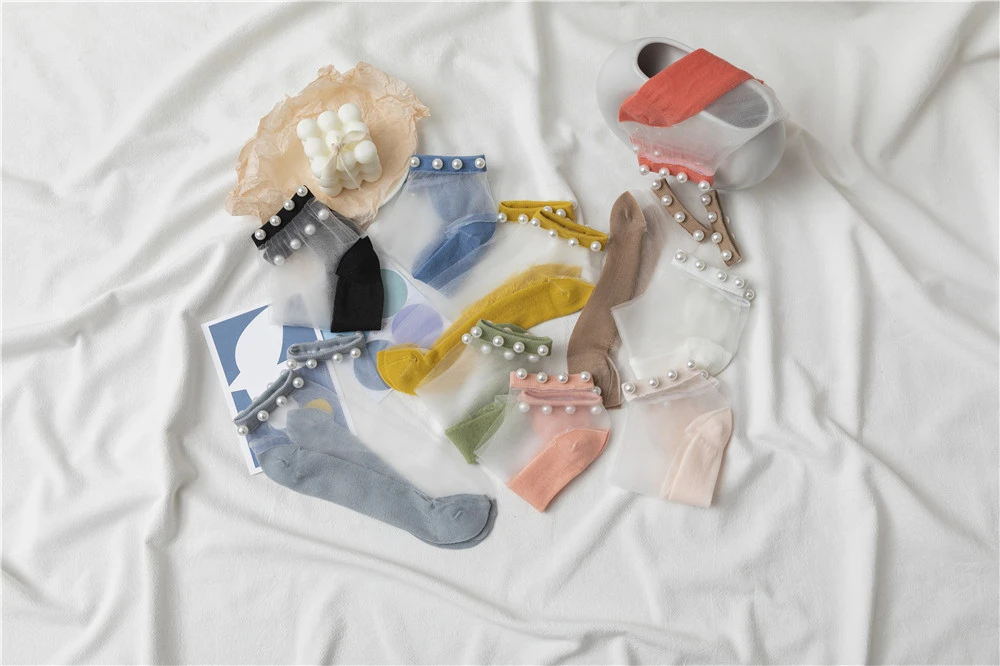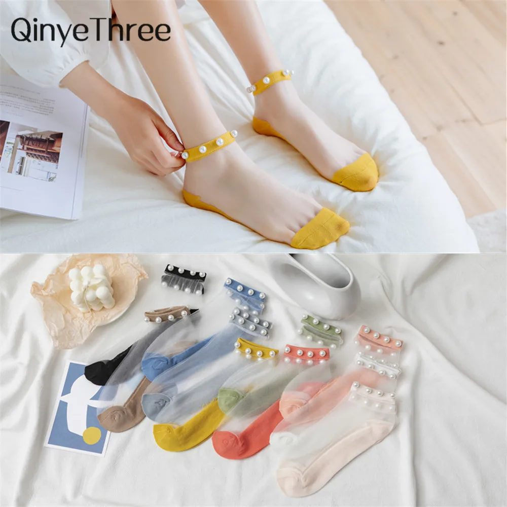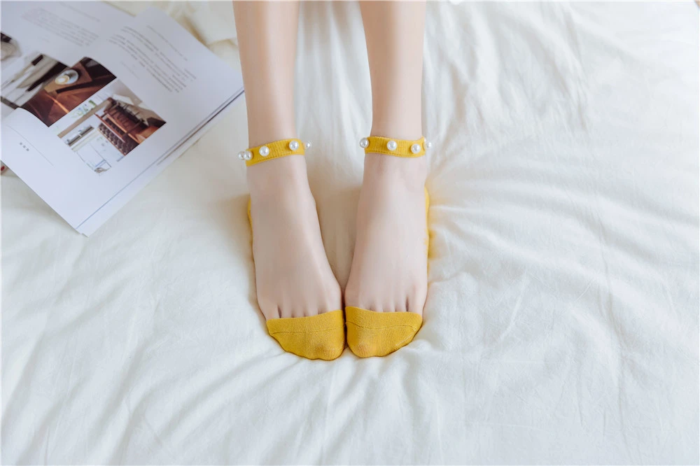 Носки женские весенне-летние из дышащего тонкого кружева с жемчугом