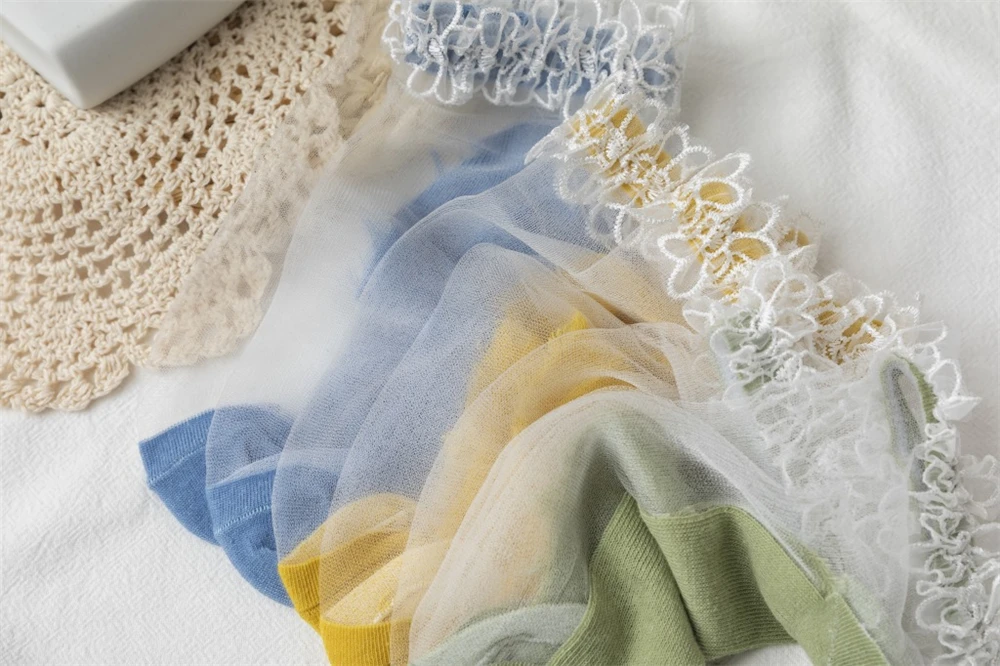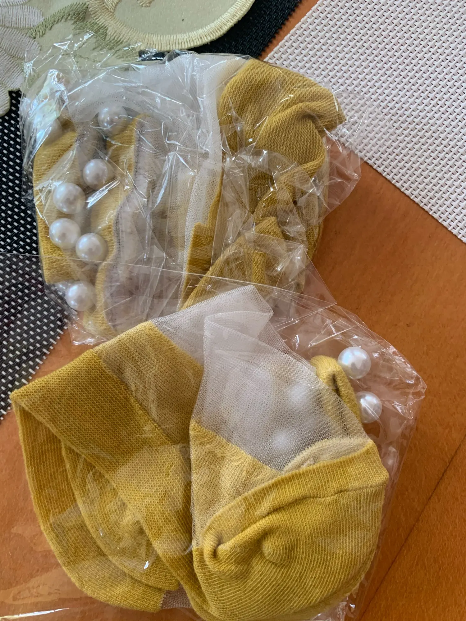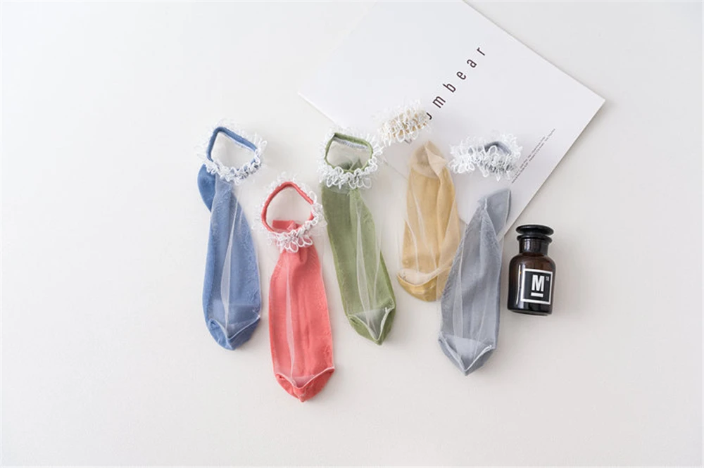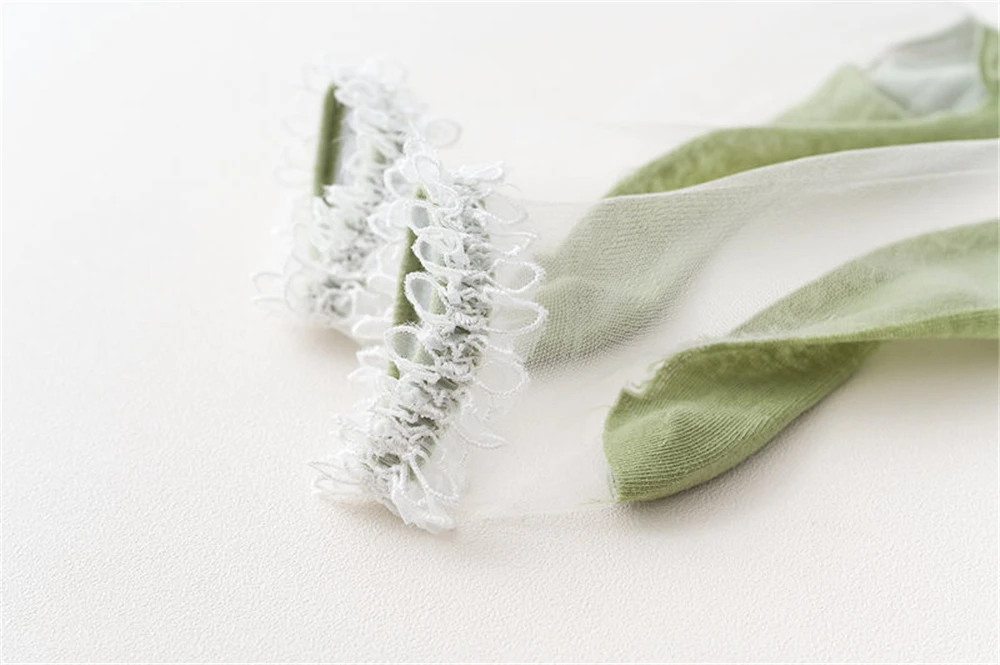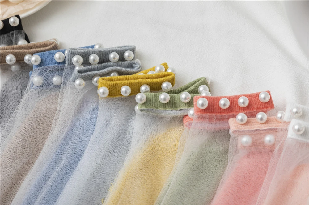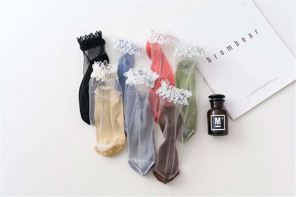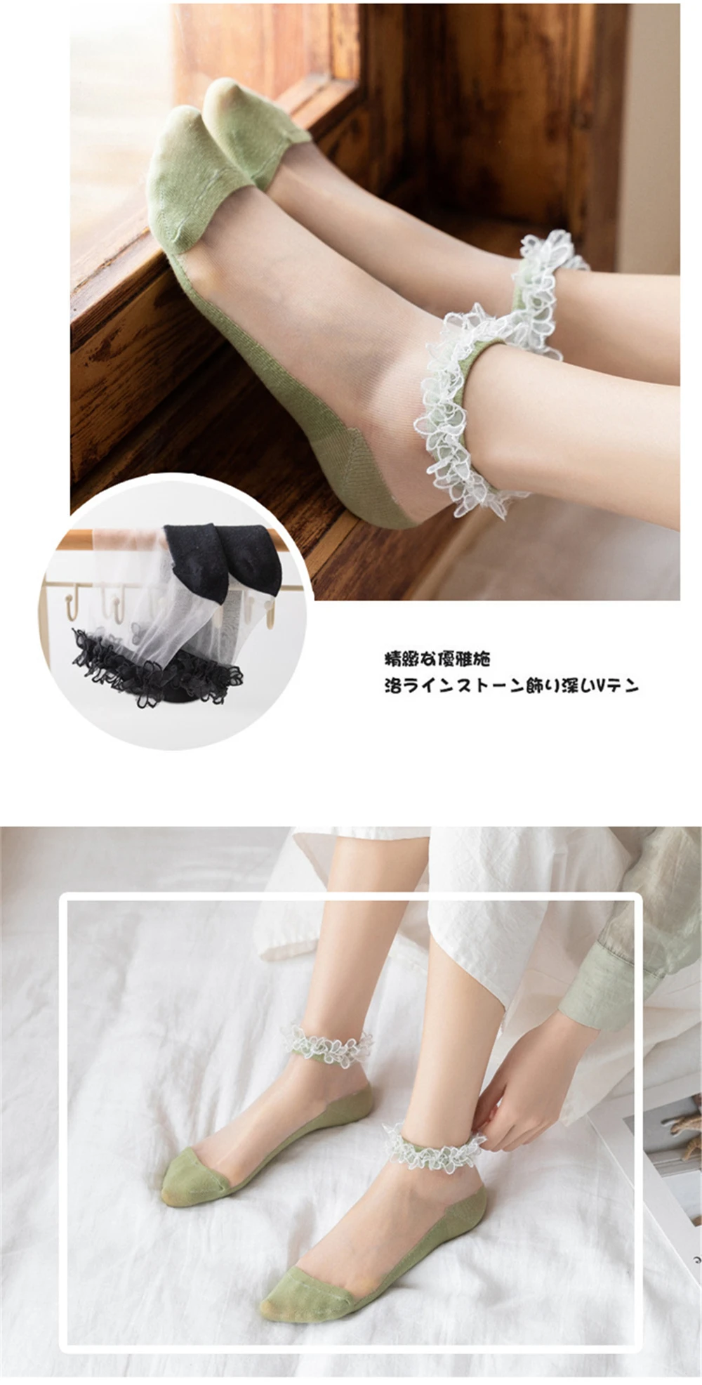 Носки женские весенне-летние из дышащего тонкого кружева с жемчугом