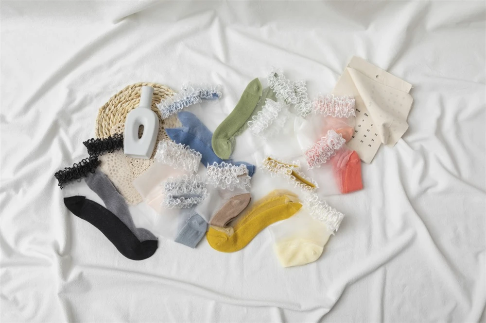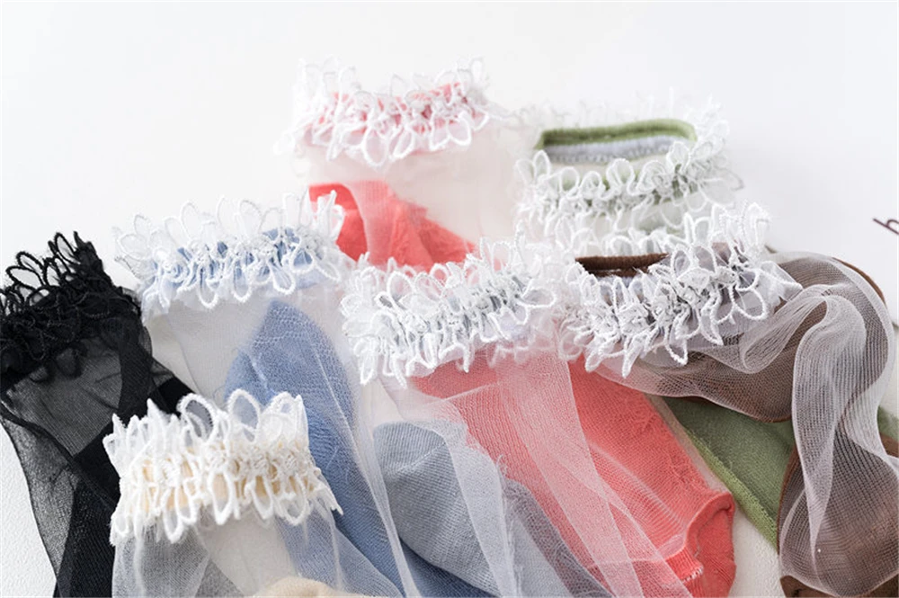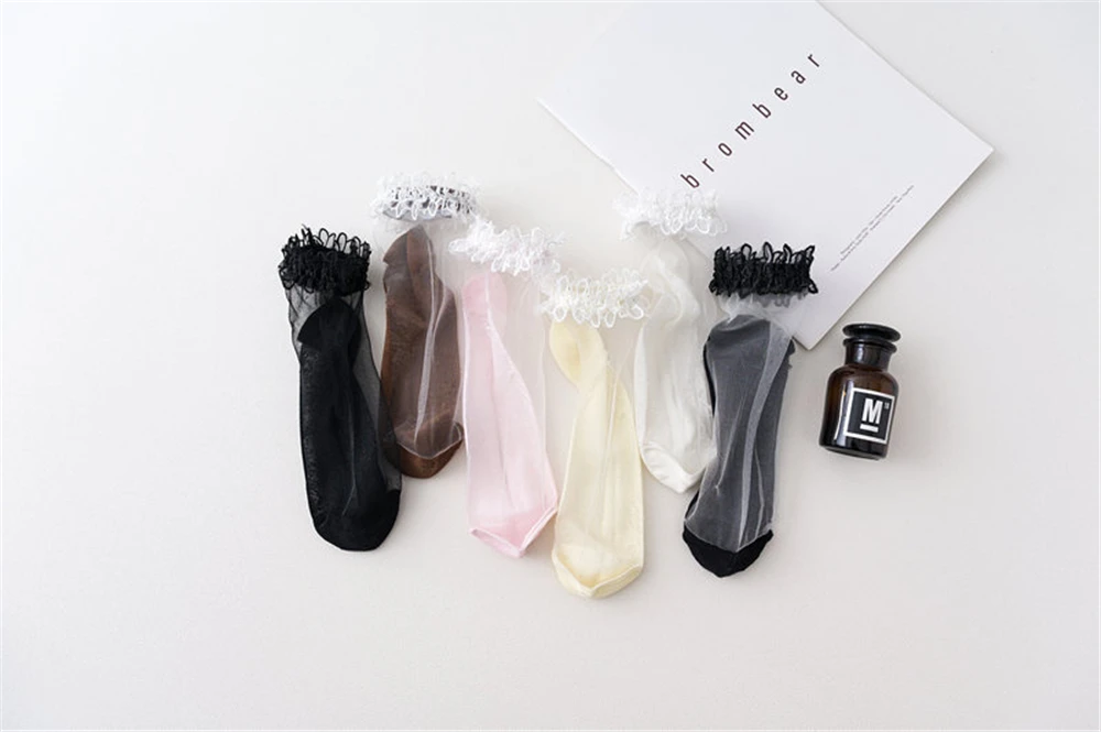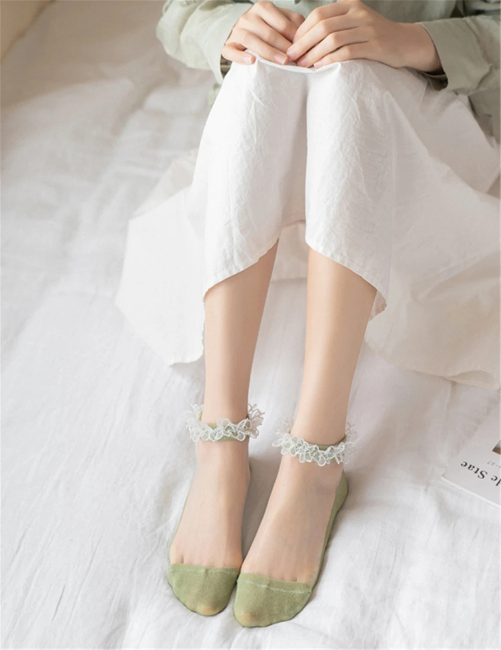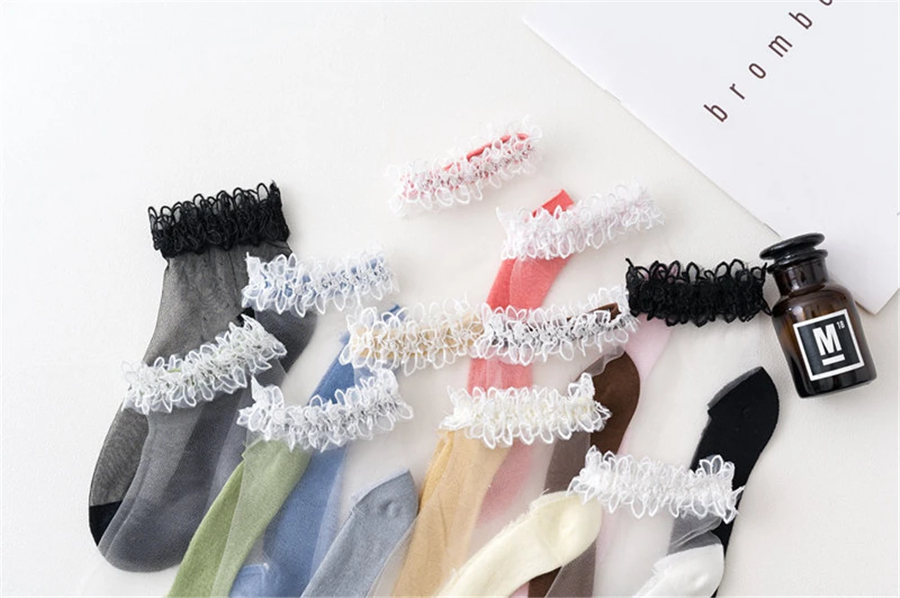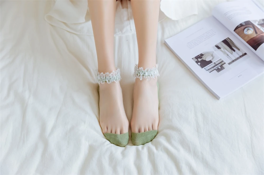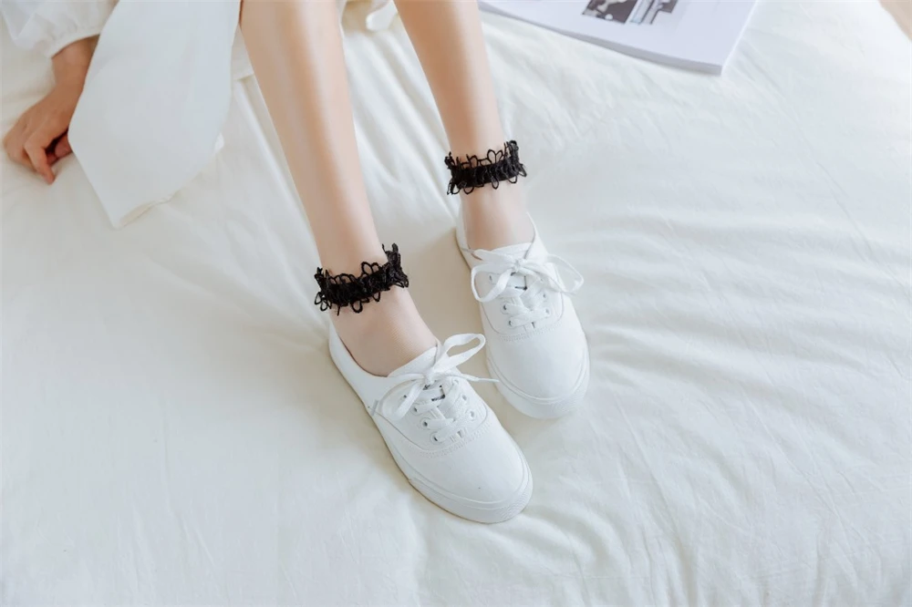 Носки женские весенне-летние из дышащего тонкого кружева с жемчугом