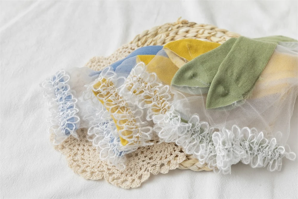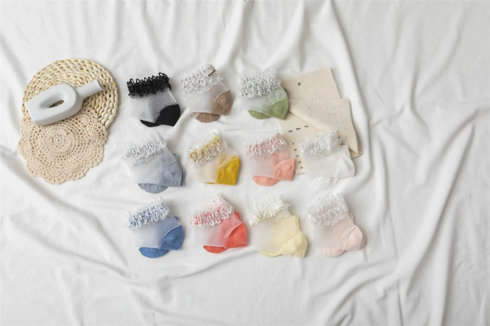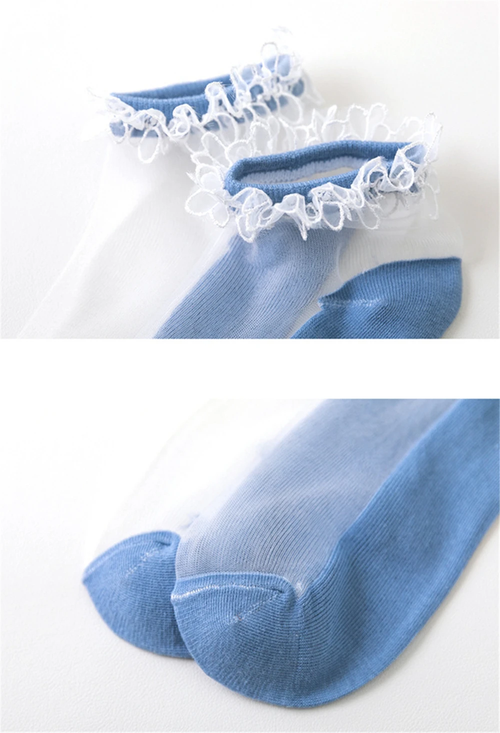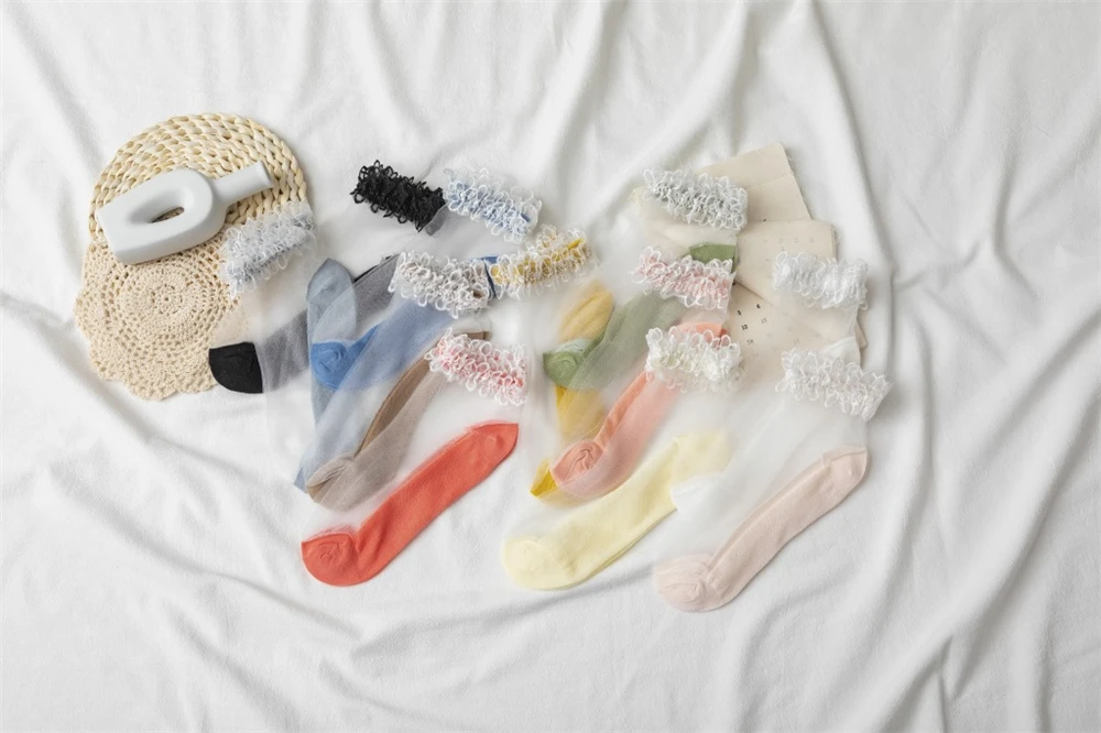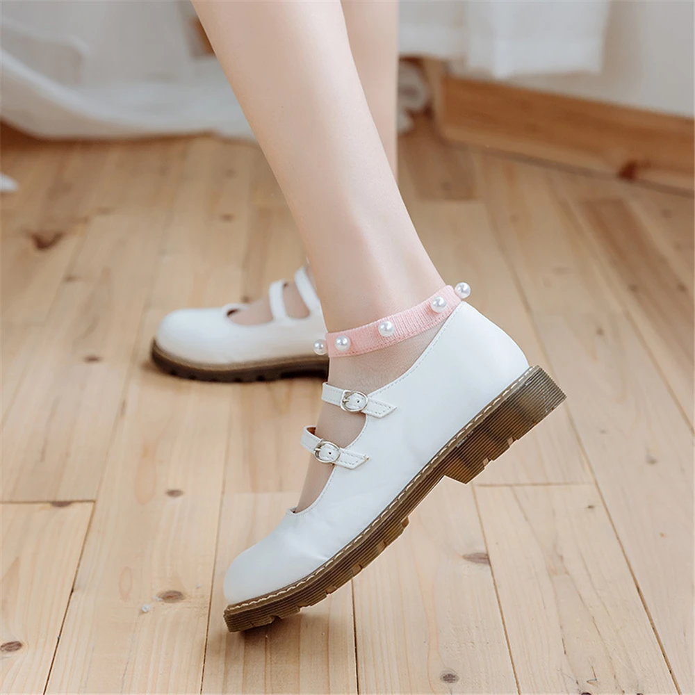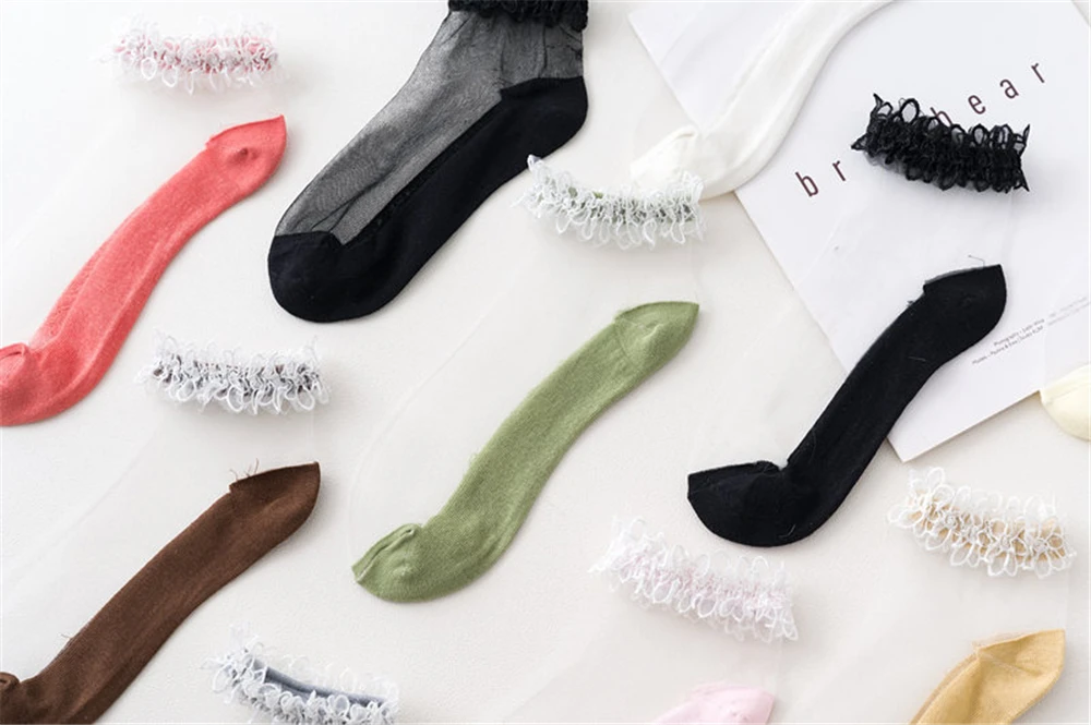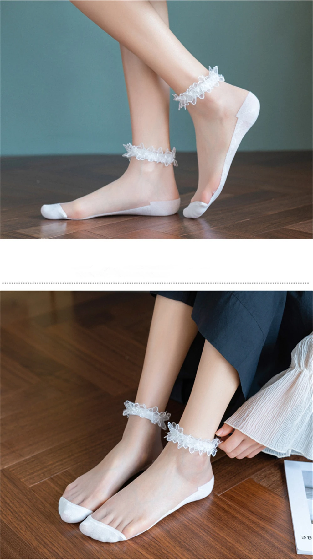Носки женские весенне-летние из дышащего тонкого кружева с жемчугом