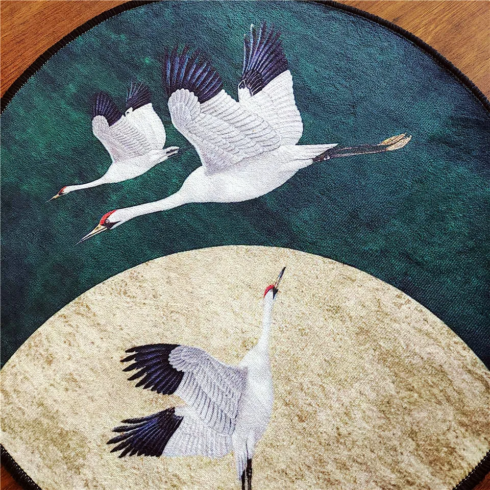 Круглый ковер в китайском стиле, роскошный ковер с принтом зеленого или золотого крана для гостиной, спальни, декоративный коврик для прихожей, прикроватный коврик для ванной