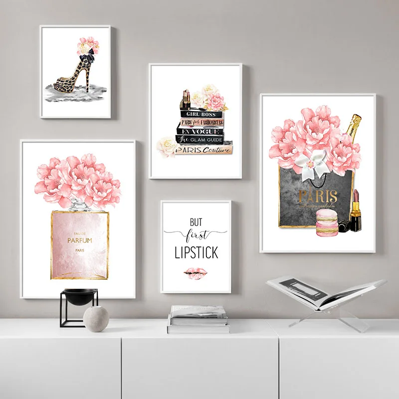 Модный постер для макияжа с принтом, сумка для парфюма, леопардовая обувь, парусиновая живопись, трендовая картина для художественного творчества, украшение для салона красоты, для девочек