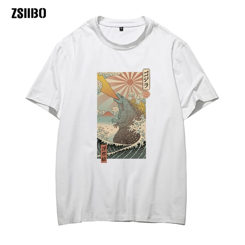 Футболка с коротким рукавом в стиле Харадзюку, повседневная мужская Свободная рубашка в стиле ольчзанг, топ в ретро стиле, одежда в уличном стиле с принтом из мультфильмов, большие размеры, на лето