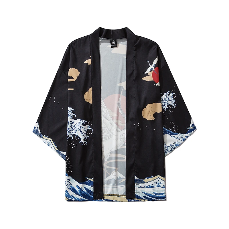 Кимоно Bebovizi в японском стиле для женщин и мужчин, рубашка в стиле журавлей, кардиган, юката, хаори, одежда с Оби, винтажная Традиционная блузка