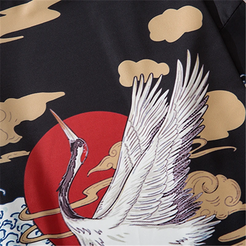 Винтажная Мужская рубашка с принтом журавлей, юката, искусственная ...