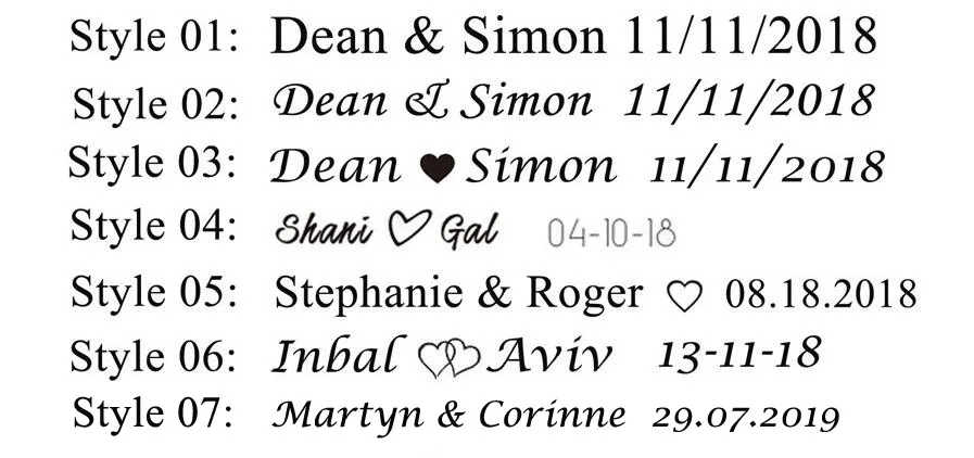 1: имя и дата или любые другие слова и язык, которые вы хотите персонализировать.