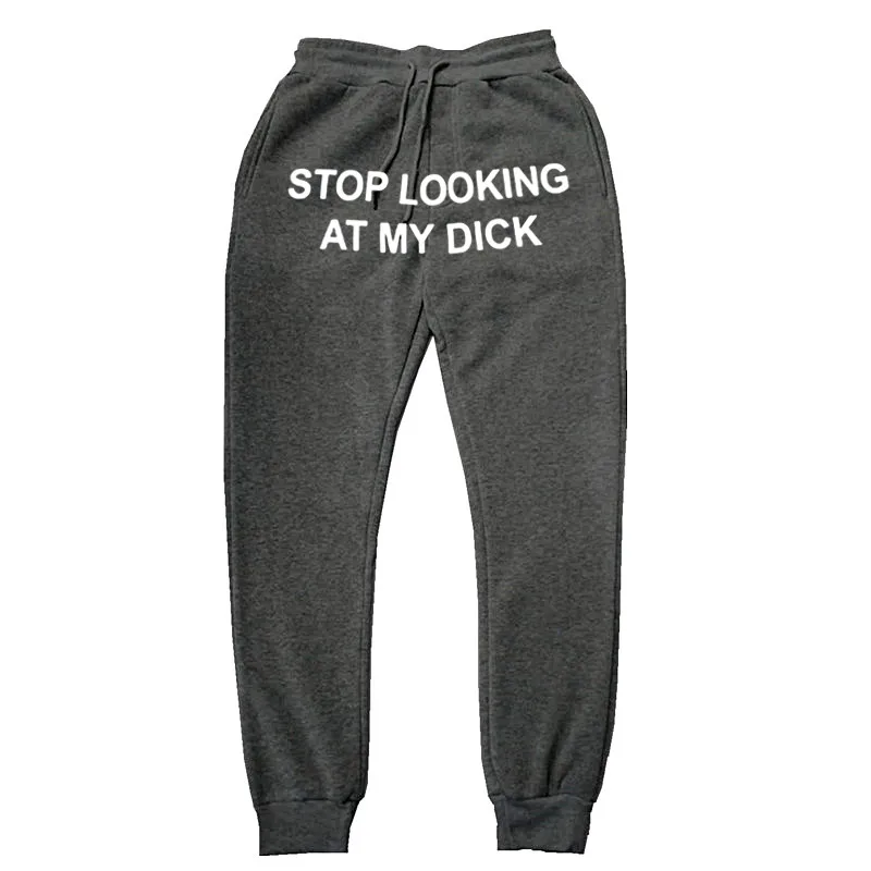 Спортивные штаны для мужчин и женщин, джоггеры, прекращают смотреть на моего члена, спортивные брюки с принтом в стиле хип-хоп, брюки с завышенной талией, уличная одежда, тренировочные штаны в стиле хиппи