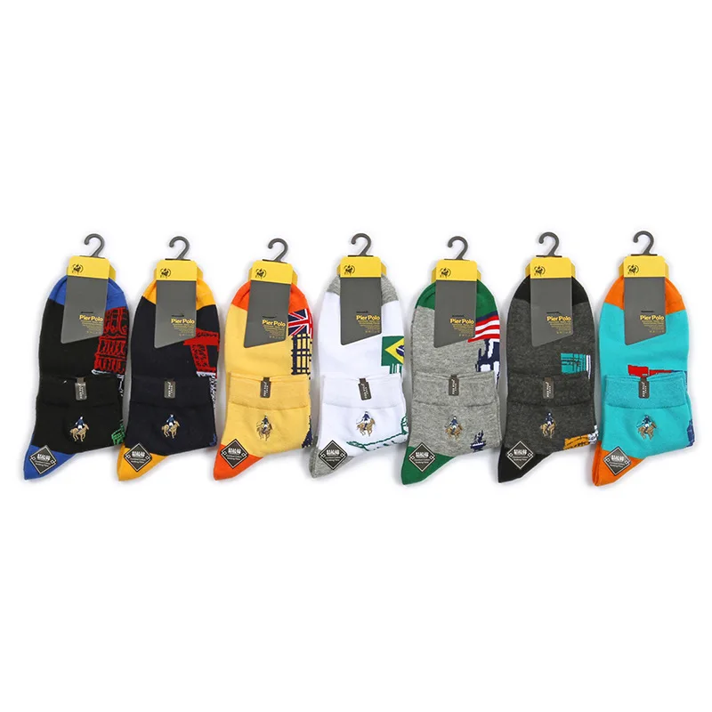 Новые мужские носки с флагом PIER POLO, брендовые 5 парлот, счастливые носки, Длинные Модные Повседневные носки с вышивкой calcetines