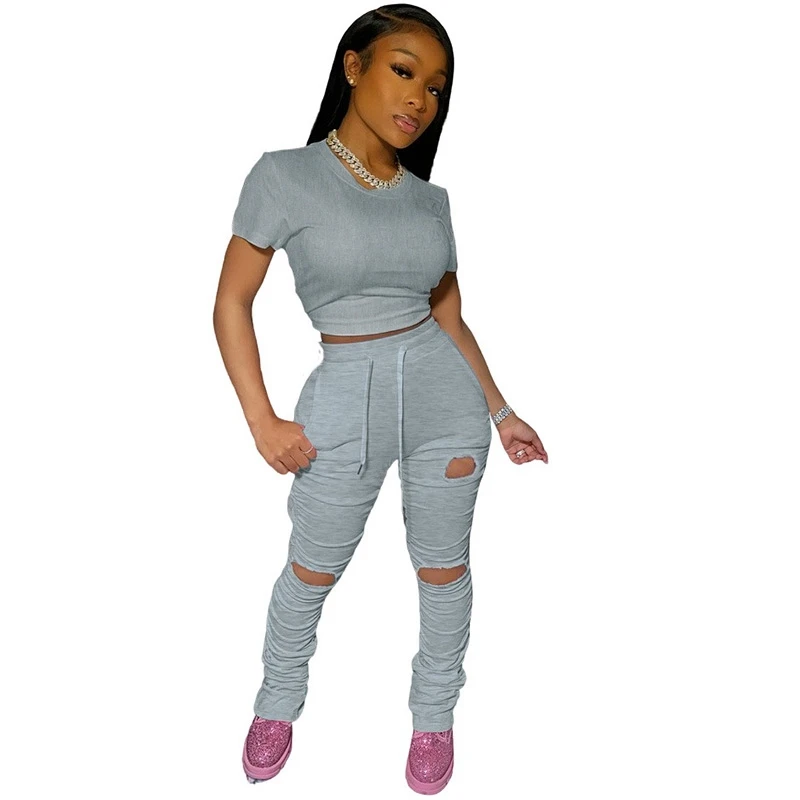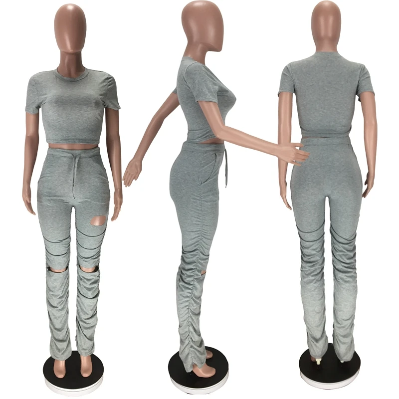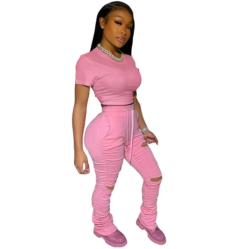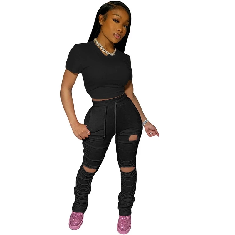 Женский спортивный костюм из двух предметов, повседневный летний короткий топ и штаны в складку, комплект спортивных брюк, женские комплекты из двух предметов