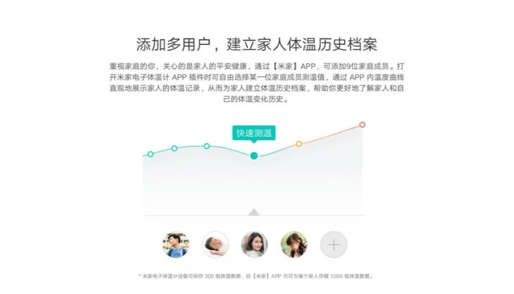 Оборудование для электронного термометра Mijia может быть сохранено на 200 данных о температуре группы, в app Store Mi Home для каждой семьи 1000 данных о температуре группы