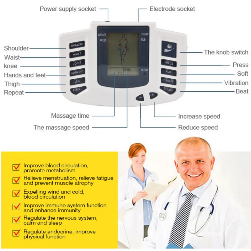 Электрический массажер-стимулятор для всего тела, для расслабления, мышечной терапии, массажер, импульсный, акупунктурный, электродные накладки, массажер для тела
