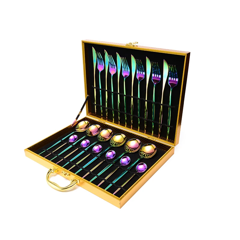 Lingeafey 24 комплект столовых приборов из нержавеющей стали вилки, ножи, ложки столовые приборы Радужный кухонный набор обеденной посуды набор посуды Подарочная коробка