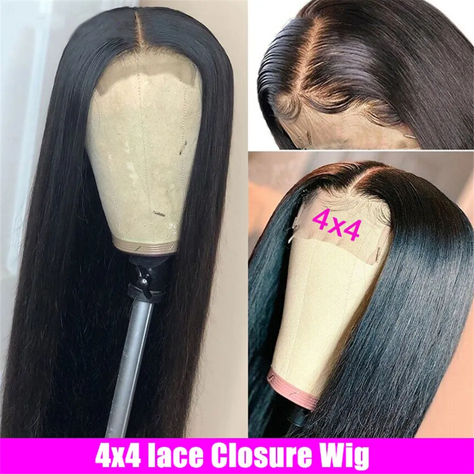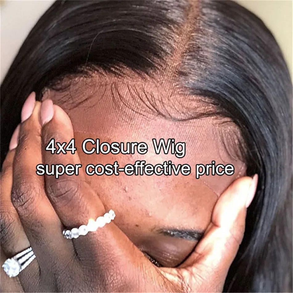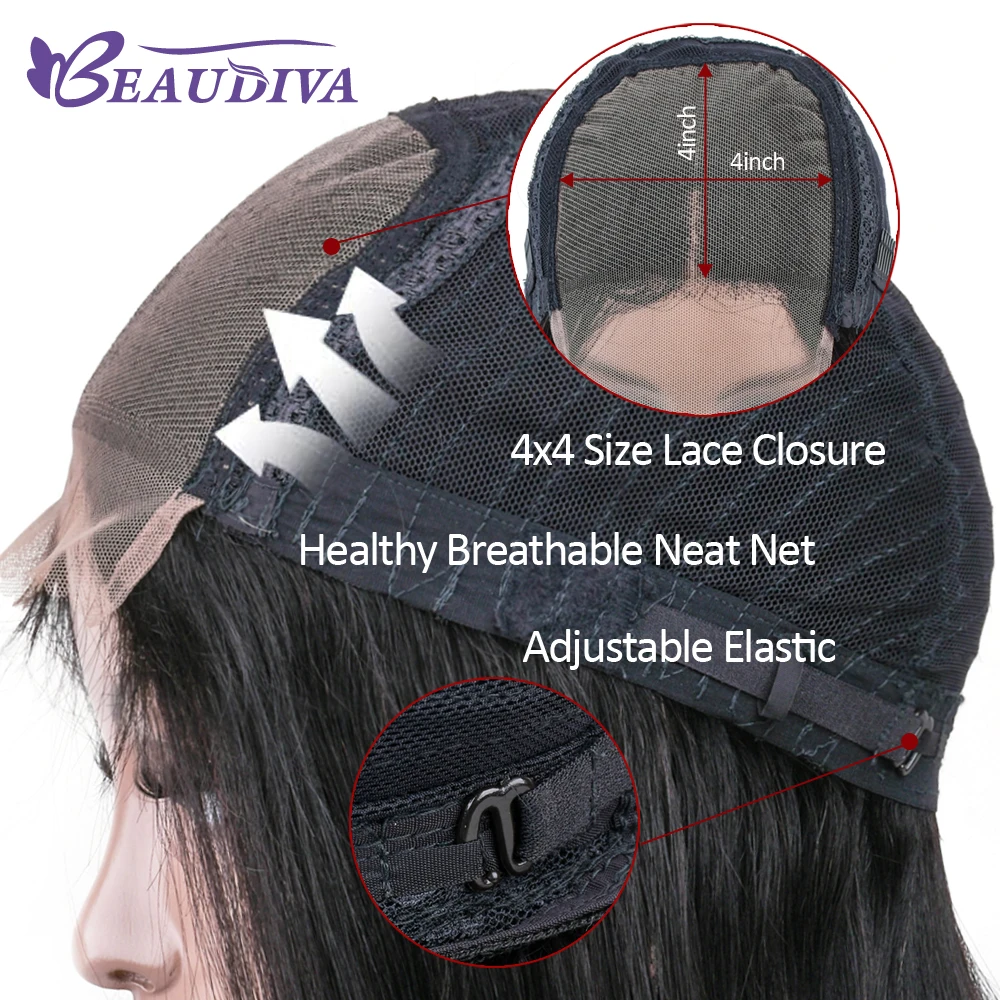 Beaudiva 4x4 закрытие парик прямые волосы 13x4 кружева передние человеческие волосы парики для чернокожих Для женщин предварительно вы прямая шнуровка, парики