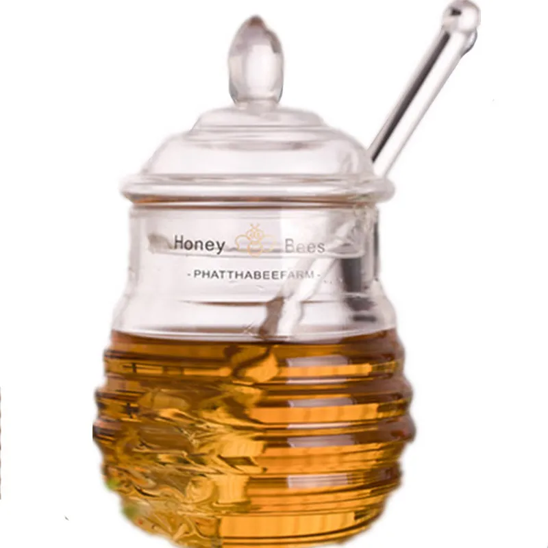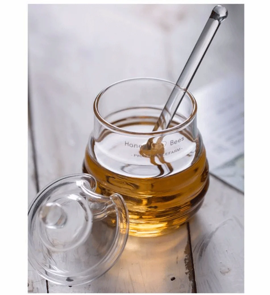 Баночка для меда, прозрачная, стеклянная, с крышкой и ковшом