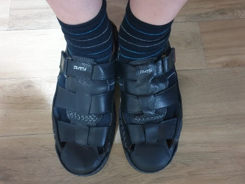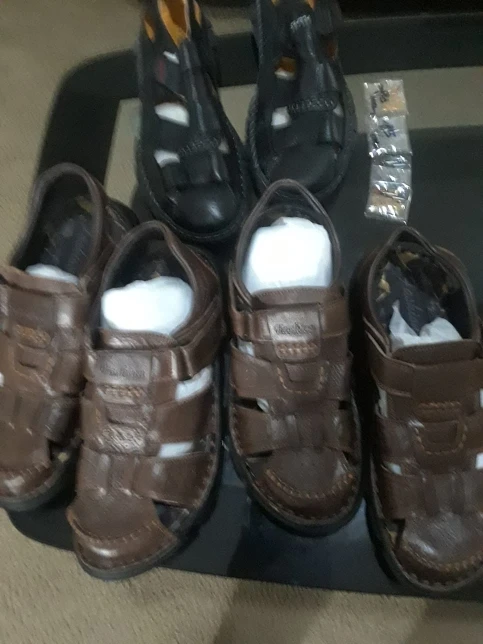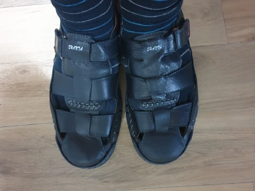 Заказали обувь по цене 12 долларов США, доставка более чем 90 дней в Южный Казахстан. На длину стопы 25.7см размер 41 подошёл идеально. Подошва мягкая удобная и практичная. Кожа натуральная говяжья вроде. Ходить по асфальту одно удовольствие. Мне эти тапки сильно понравились. Сами стельки толстые и крепкие. В процессе эксплуатации я ещё обязательно напишу дополнительные отзывы. Ждите. Рамшель Бауржан Александрович. Долан, Карасайский район, Алматинской области. Великая Казахская Степь. 23 апреля, 2021 года.