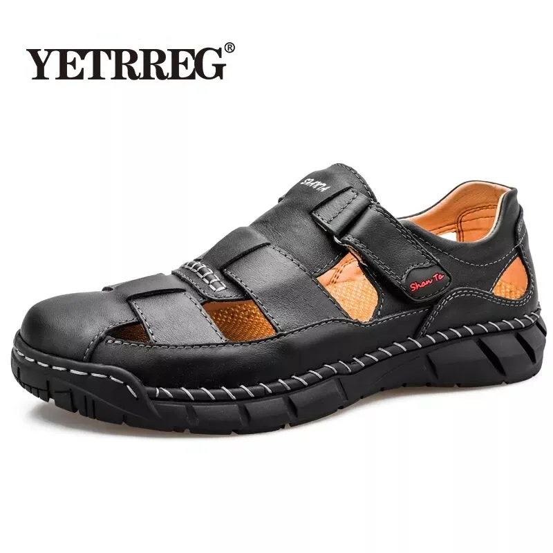 2020 классические мужские сандалии, летние из натуральной кожи, мужские уличные сандалии повседневные легкие сандалии, модные мужские тапочки, размер 38-48