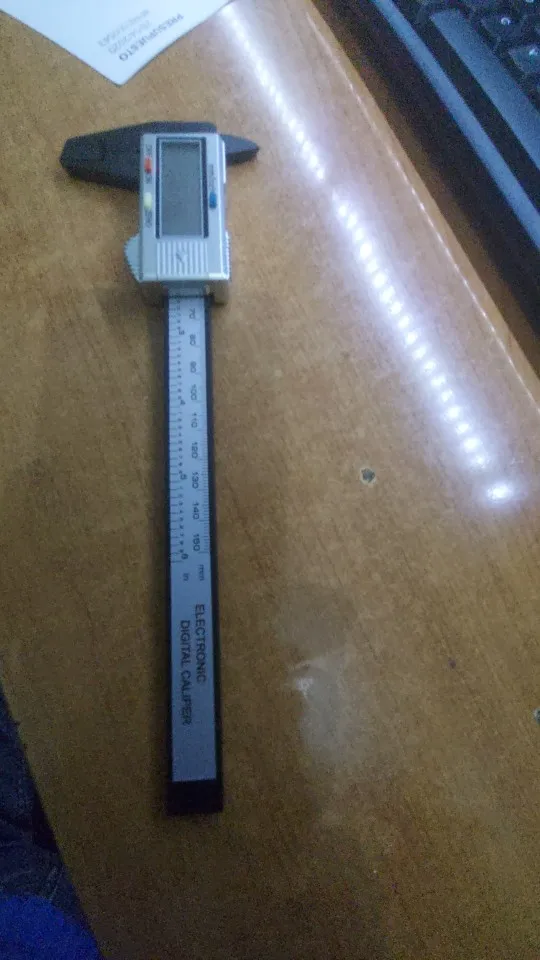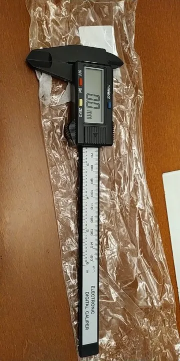 Доставка быстрая - 13 дней. Упаковка хлипкая, но сам "аппарат" в целости и сохранности. На вид и на ощупь - дешёвый пластик. Если пользоваться инструментом в домашних условиях для чего-то раз в... вполне подходит. О постоянном и профессиональном использовании речь не идёт - очень хлипкий. Присылают без батарейки, так что купите заранее SR44, или LR44. Точность в см до десятых. Придел измерения 15,7 см, или 6,18 инч.