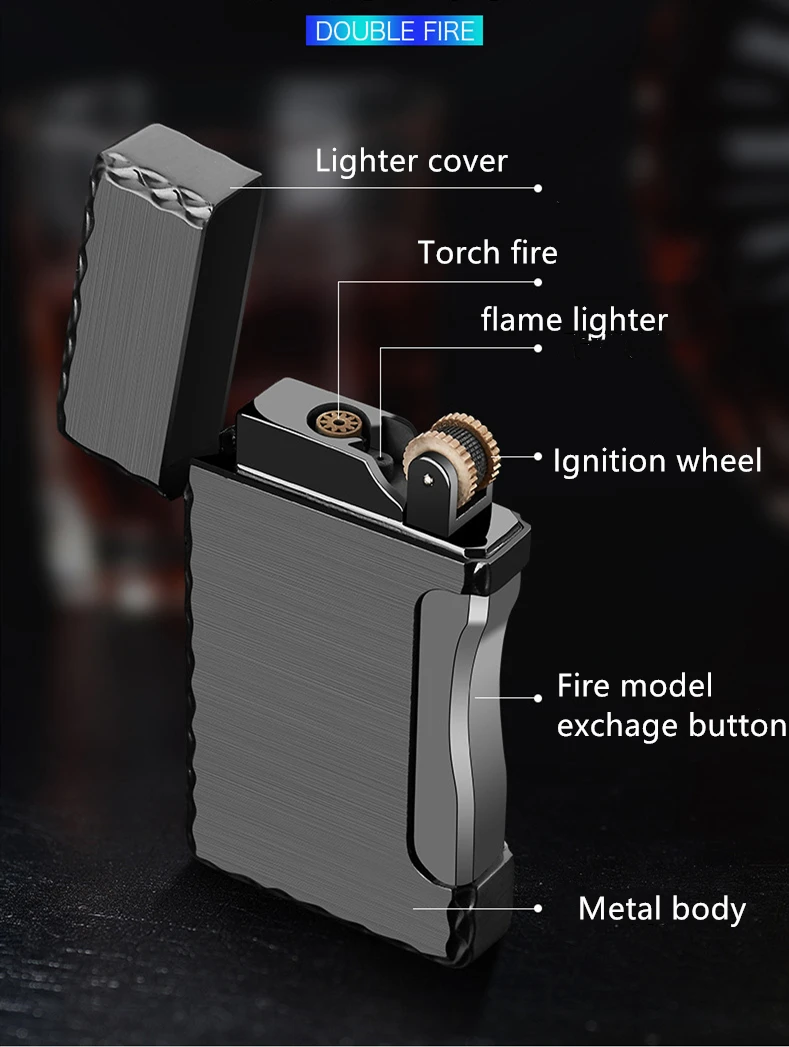Зажигалка с двойным пламенем, Бутановая, для сигарет, зажигалка Fre...
