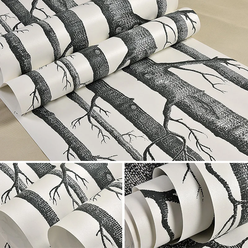 Особенности:3D-обои из нетканого материала с изображением березовых веток и леса