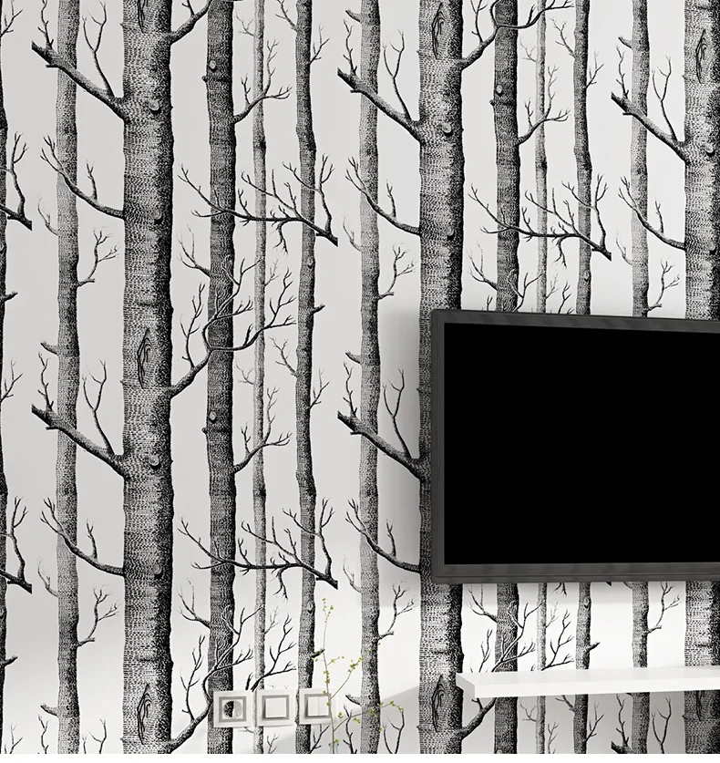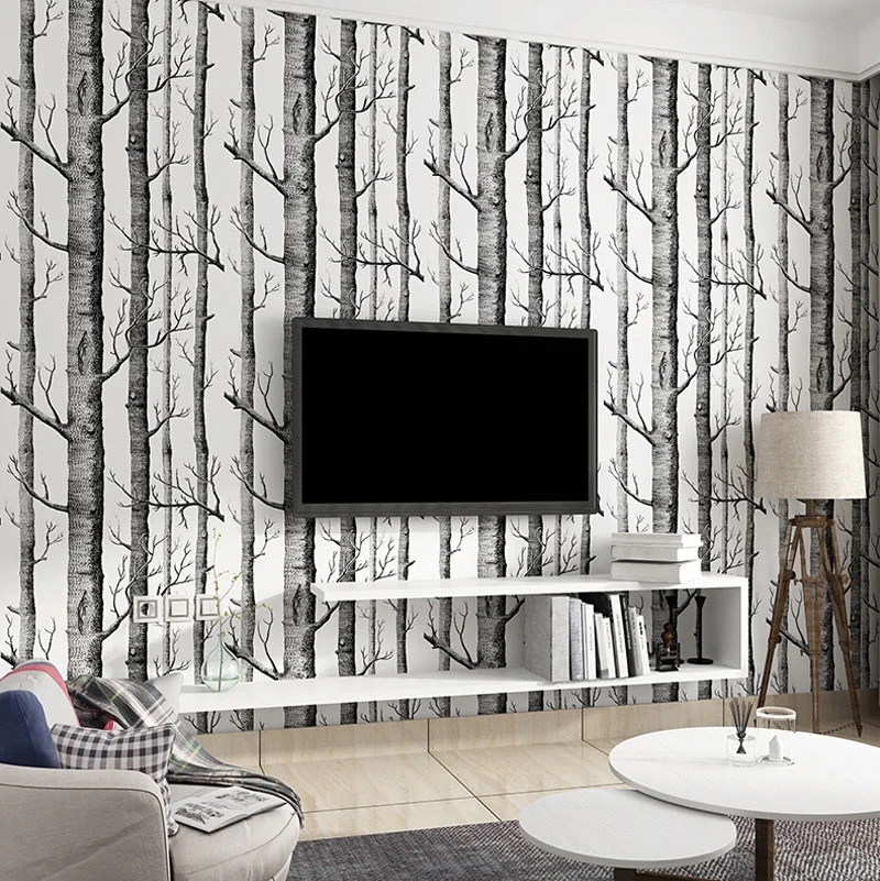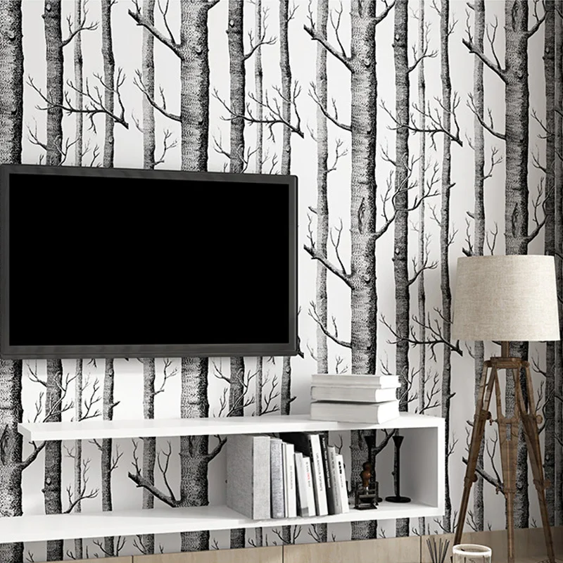 Белые 3d обои, рулон современной гостиной, спальни, Нетканая ткань, Березовая ветка, лес, ТВ, диван, фон, настенная 3d Бумага