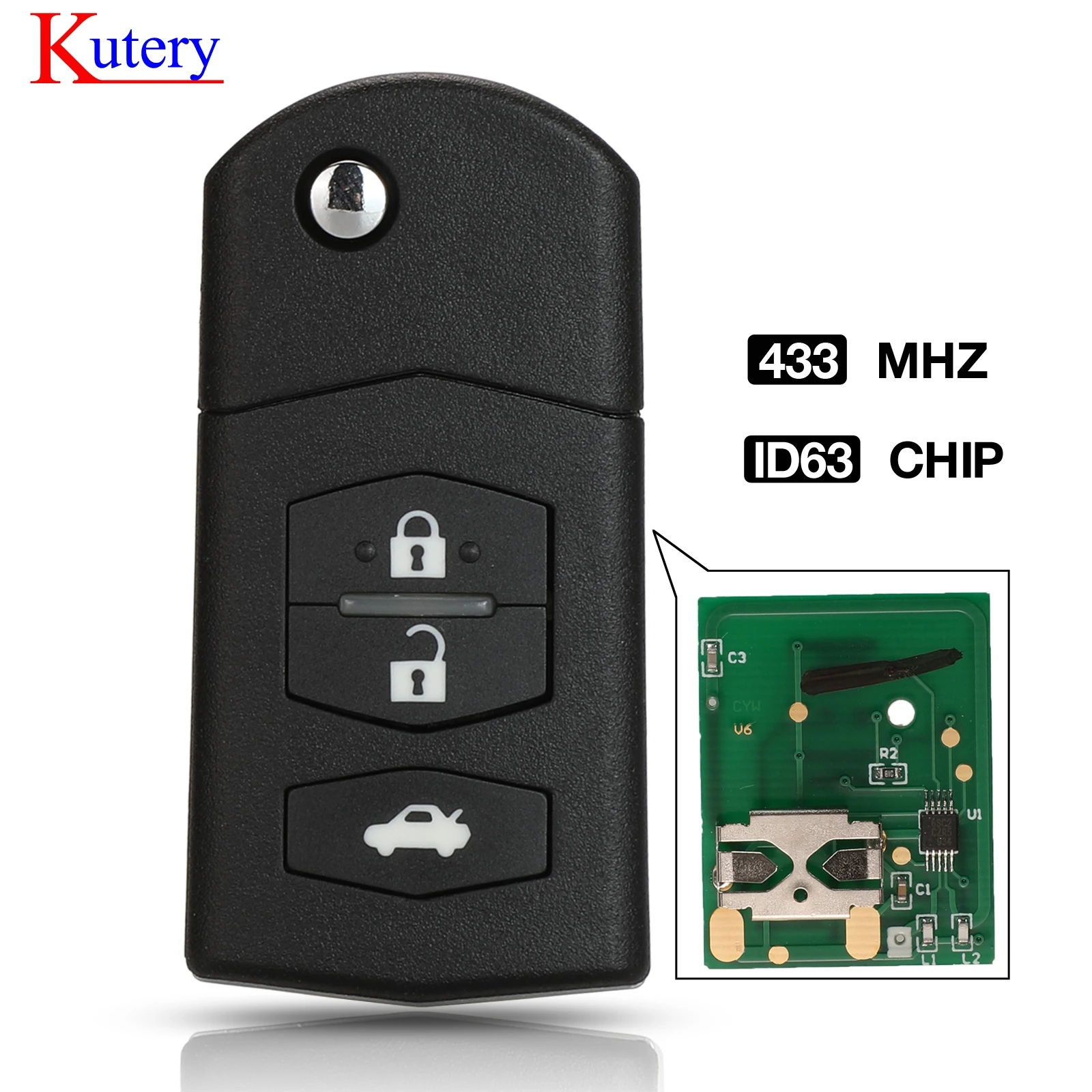 Kutery дистанционный Автомобильный ключ 433 МГц 4d63 чип Fob 3 кнопки для Mazda 2 6 2010-2013 PN: Mitsubishi SKE126-01