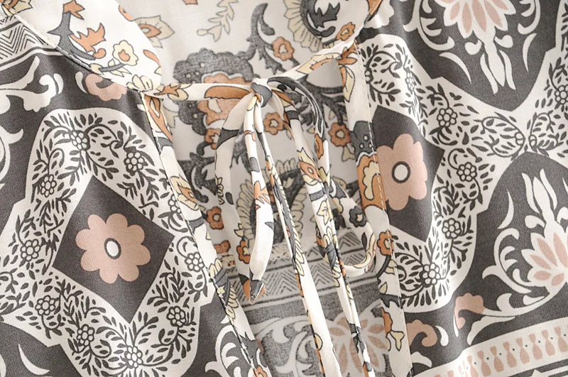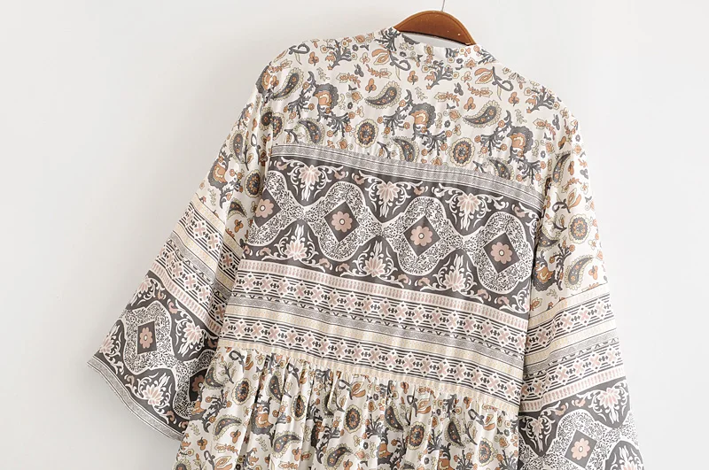 Винтажное шикарное женское платье в стиле хиппи с цветочным принтом и глубоким V-образным вырезом, богемное мини-платье, женские платья в стиле бохо из вискозы и хлопка с расклешенными рукавами