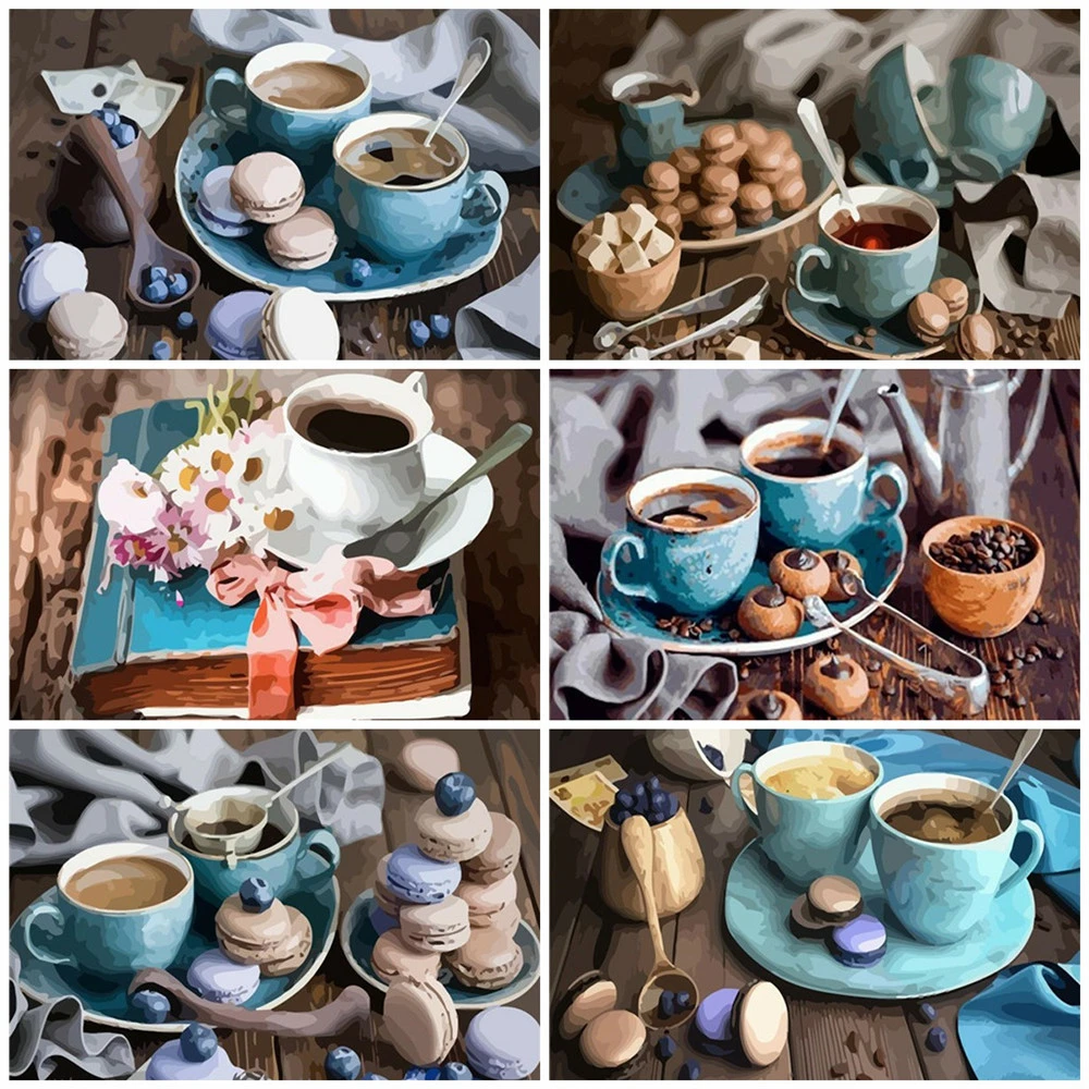 HUACAN Сделай Сам картины Кристальное Раскраска по номерам Кофе чаш...
