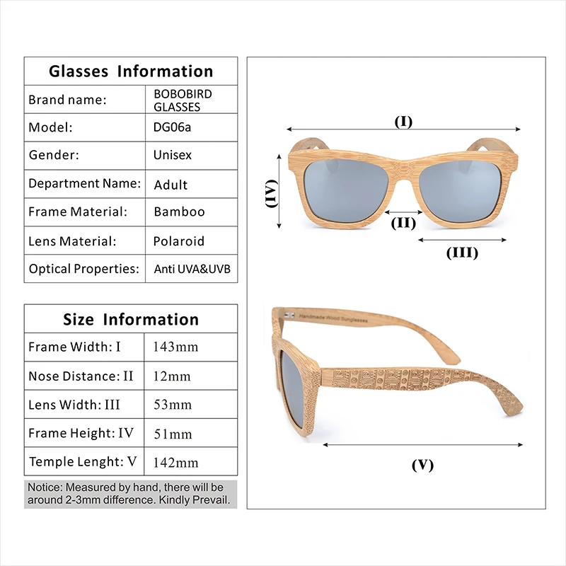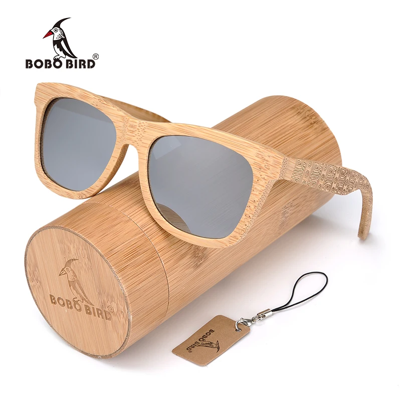 Солнцезащитные очки BOBO BIRD, бамбуковые, с серебристыми поляризац...