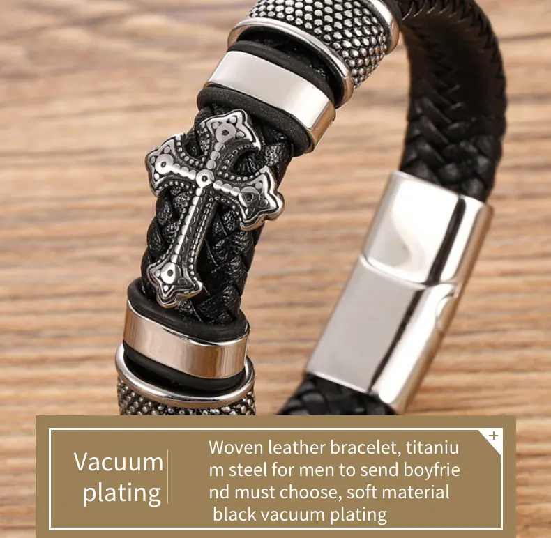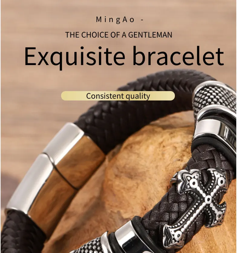Мужской многослойный браслет, плетеный браслет из нержавеющей стали, черныйкоричневый