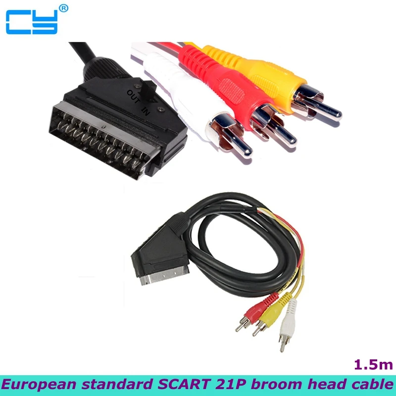 Кабель SCART европейского стандарта, 21P, головка метлы, аудио-и видеокабель для разницы в цвете (кабель 3AV 3RCA), 1,5 метра