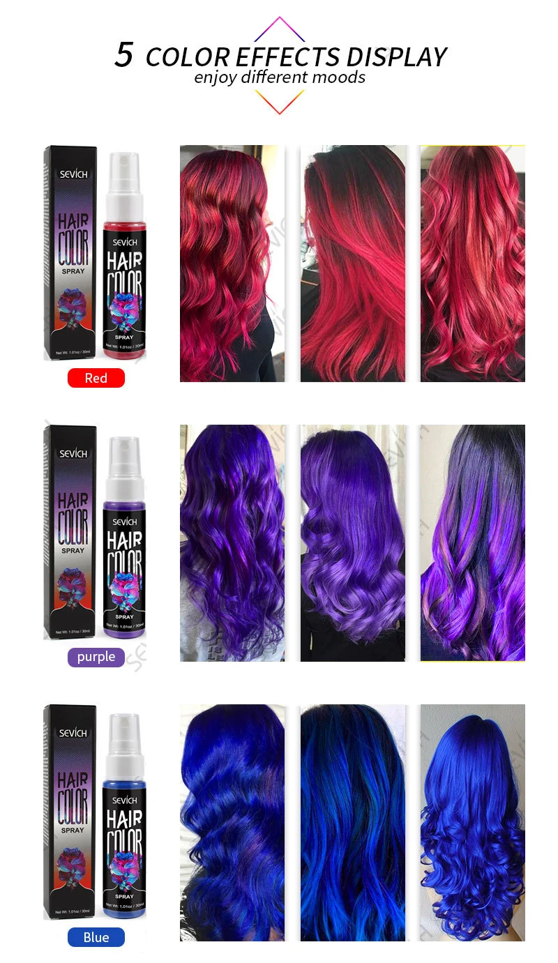 Наслаждайтесь разным настроением-в нем 5 различных цветов на ваш выбор; Фиолетовый, красный, белый, синий, и серый. Экспериментируйте и Веселитесь смелыми комбинациями цвета волос!