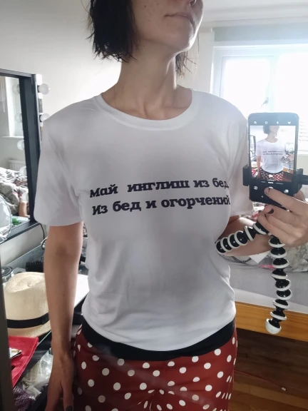 Футболка мужская белая, с надписью на русском языке, с коротким рукавом